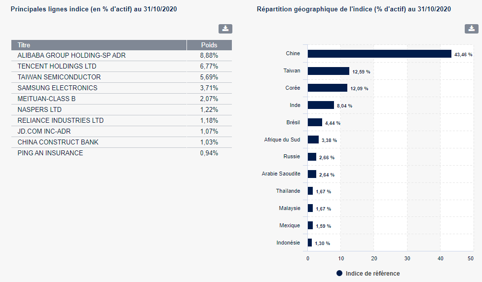 PLEM c'est 80% Asie: 10 1eres lignes: C'est peut-être un peu moins performant que PAASI mais c'est un peu plus diversifié. Message cité 1 fois Message édité par Mitch2Pain le 08-12-2020 à 20:11:54 |