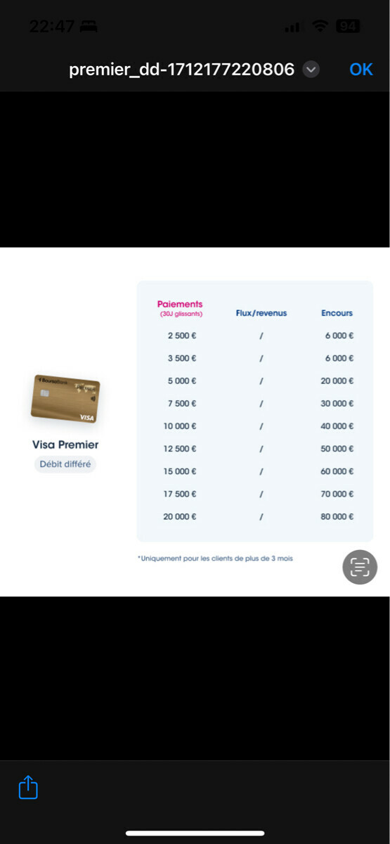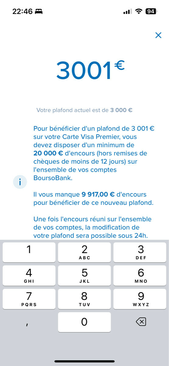 Ce n'est pas utile tout les mois mais les quelques mois où c'est utile dans l'année, je trouve confortable d'avoir des plafonds plutôt hauts. J'étais à 7500€ / 30j chez ING et Bourso, et en basculant d'ING à Fortuneo, je suis descendu à ~4500€ / semaine chez eux, ce qui est bas... --------------- La sagesse n'est pas la femme du sage... |