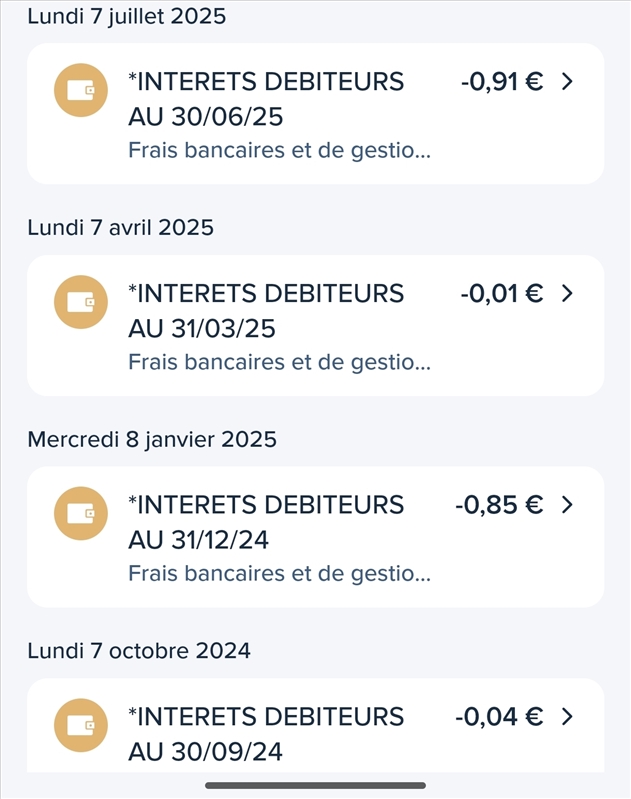 Profil supprimé | Posté le 15-12-2025 à 15:33:17 ![]() Toujours rien reçu, alors que je n’ai a priori jamais utilisé le découvert en 7 ans (0 résultat en cherchant « agios » dans mes débits) |