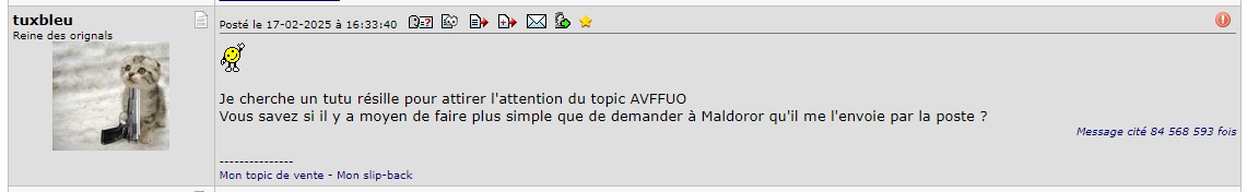 | Auteur | Sujet : Le topic de toutes les Questions (AVFFUO) |