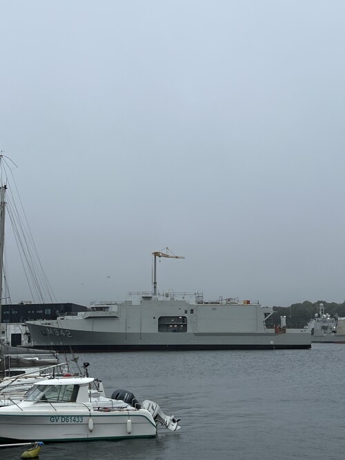 Hegemonie | La coque sans fenetre c'est pour la furti radar, il y a des "volets" pour protéger les grosses ouvertures permettant la mise à l'eau de dromes ou drones (CF FREMM) |