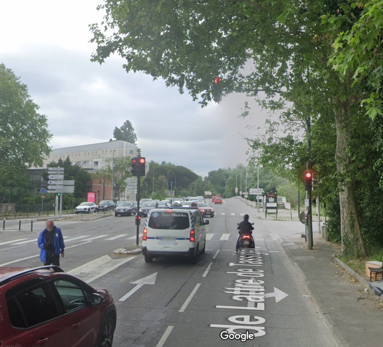 Laska- | Je viens d'emprunter de nouveau cette avenue ce matin. Je me suis rendu compte qu'il y avait en fait trois endroits possibles pour réaliser potentiellement ce type d'infraction. Un endroit avec des voies affectées, un endroit avec un rétrécissement de voies (une voie disparait suite à des travaux), ou la circulation s'établit en files ininterrompues. Et enfin un endroit où une voie de bus s'interrompt à l'occasion d'un feu, et donc pour respecter l'obligation de tenir son véhicule près du bord droit, on peut aller sur la voie de droite sur un morceau d'une centaine de mètres, et toujours avec la même problématique de feu tricolore où les gens n'avancent pas, se retrouver à les dépasser par la droite.