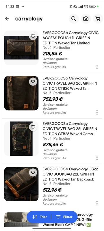 gui3gui | Reprise du message précédent : En Allemagne, tu as encore le site le petites annonces d'ebay qui marche très fort. Sinon les groupes Facebook spécialisé fonctionnent très bien, notamment Carrying The union qui est le pendant de carryology pour les personnes dans l'ue. J'avais acheté mon hill people gear Connor v2 via le groupe fb hpg owbers. Par contre sur ebay, si tu tapes carryology attend toi à avoir une attaque (au vu des prix que tu décris au-dessus). https://rehost.diberie.com/Picture/Get/r/335356 |