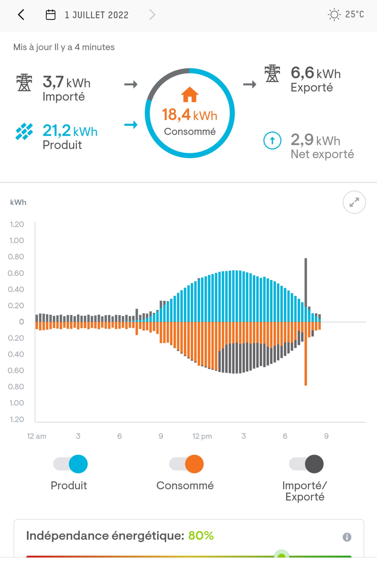 Faudra en reparler dans 20 ans Sinon, je viens de percuter que c'est pas ma prod qu'est naze vers midi, mais le fait que j'ai volontairement limité mon onduleur à 80A vers les batteries donc un peu plus de 4000w. --------------- ^_^ |