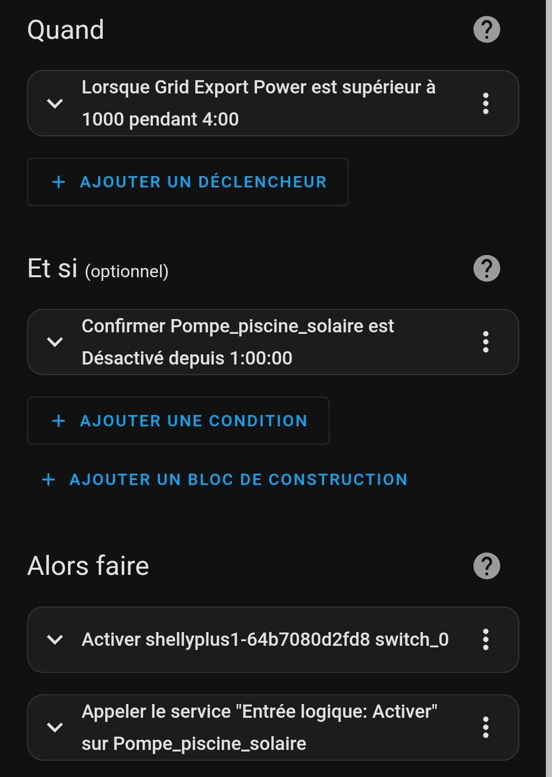 Vu que tu consomme pas grand chose, je serait plutôt parti sur un kit 800 ou 1600w et j’en aurai mis plus (et encore, à calculer) au moment de la PAC. Message cité 1 fois Message édité par aldayo le 24-04-2024 à 07:16:27 |