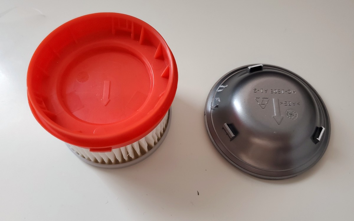De ce que j'ai pu voir, les V9 et V10 sont quasi identiques, rien ne change hormis le bloc-moteur évidemment, et la couleur des accessoires. J'ai un V9, et autant sur le filtre original que sur celui de rechange, j'ai cette étiquette, donc je ne sais pas pourquoi le youtubeur teubé ne l'a pas, le plus probable c'est que les premières séries en étaient dépourvues, mais je pense que le filtre reste lavable. edit: sur la vidéo de bricovideo.ovh, (test bien meilleur que celui de avis express au passage), on peut voir l’étiquette à 1:33