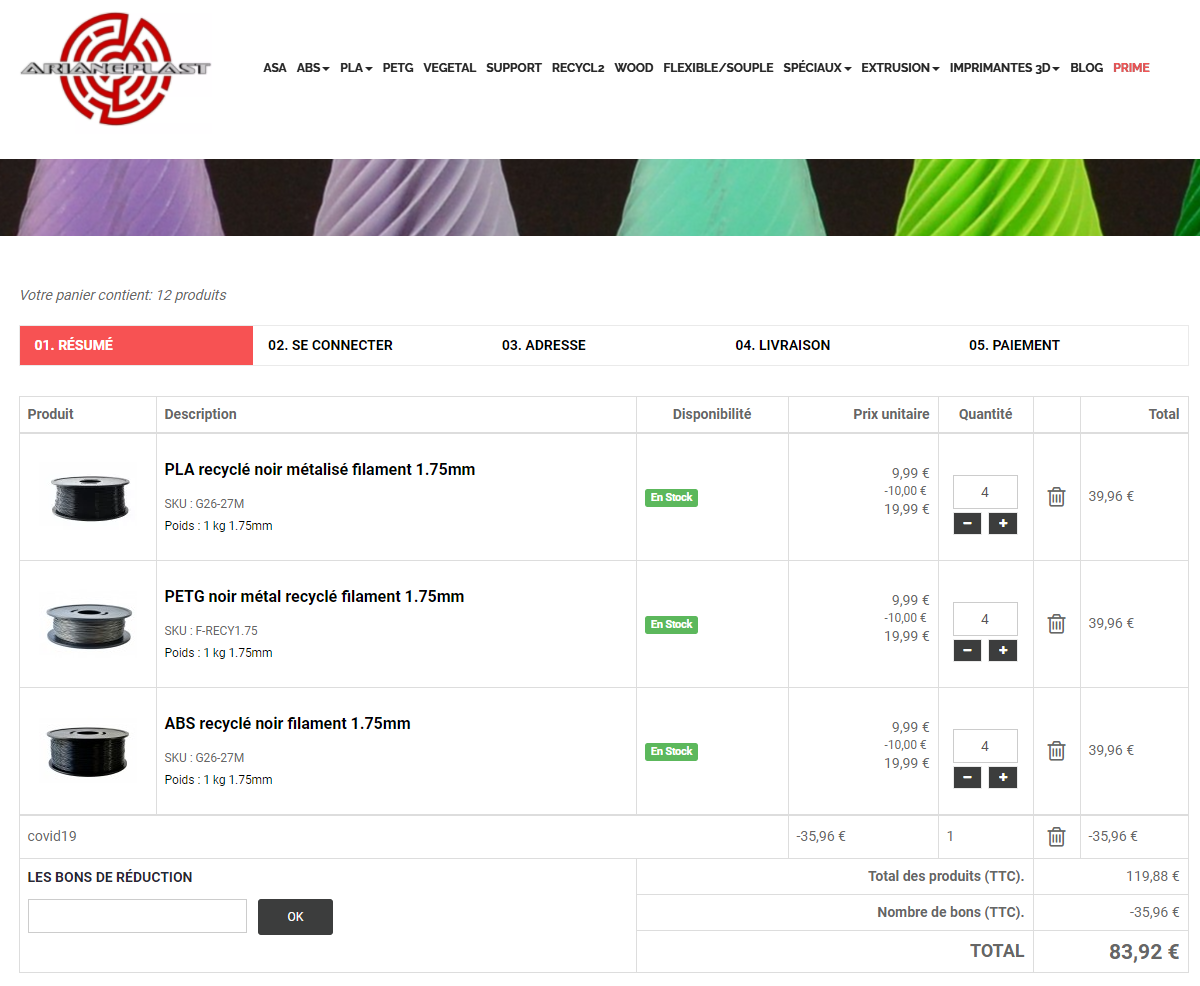 Masure | Je relaye un bon plan de dealabs chez Arianeplast pour du filament recyclé à très bon prix.