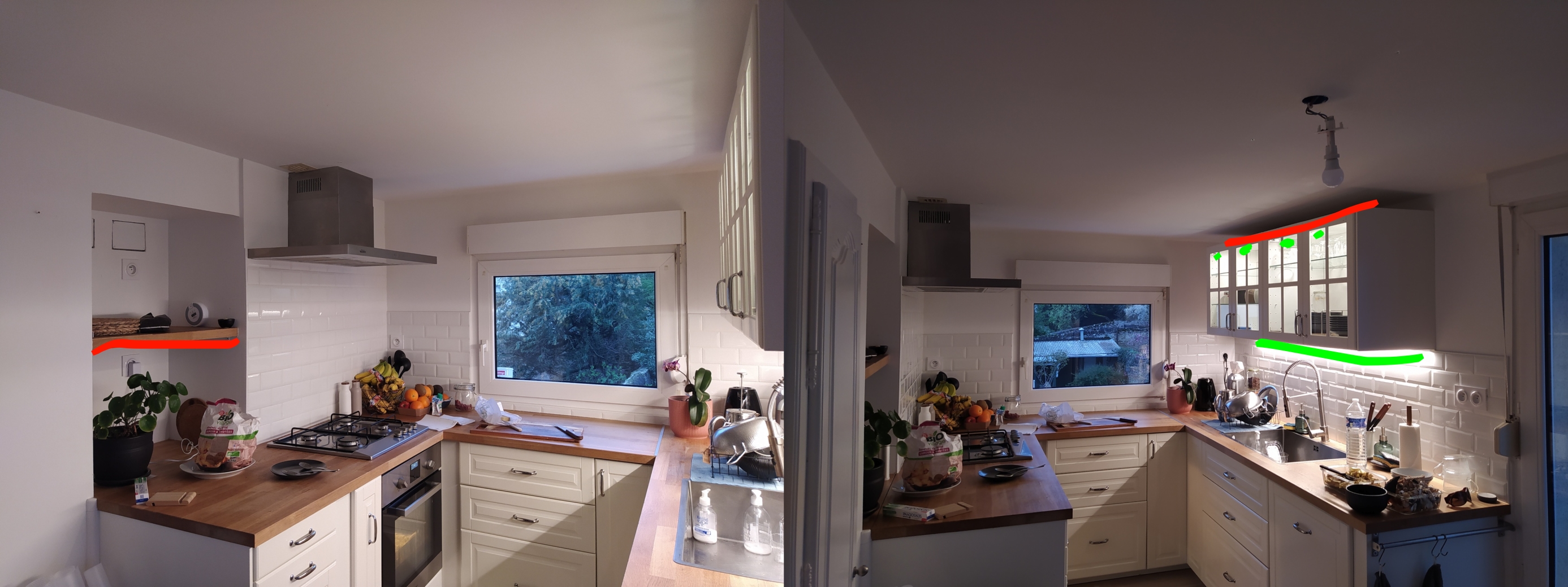 dafunky | J'ai mis du ruban led au dessus de mon meuble de cuisine, avec une config comparable sauf que j'ai 2.9m de plafond. Ça fait un éclairage indirect sympa pour l'ambiance mais ça ne suffit pas pour "travailler" sur le reste des plans de travail qui n'a pas d'éclairage. Et dans ton cas la distance meuble /plafond est trop faible pour que ce soit idéal, sauf à mettre un angle de 45° --------------- xPLduino, la domotique DIY deluxe - - - - Sigma 85mm F1.4 |