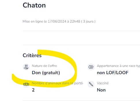Grinch | c'est pareil pour les chats et chiens tu vois souvent DON ( qui est une vente deguisée ) c'est tres bien pour limiter les portée sauvages, et ça marche, il y a désormais une majorité de chiens / chats loof, en regles ça a nettoyé la vermine qui faisait faire des portées dans les caves pour arrondir les fin de mois Message édité par Grinch le 21-06-2024 à 21:32:39 --------------- Feedback |