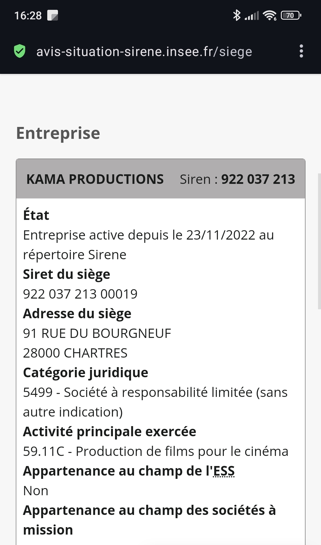 MasterGone | KAMA PRODUCTIONS (EURL avec un capital à 1 €... ) a été mise en liquidation le 19 juin 2023 par son associé unique... 6 mois d'existence seulement et en cours de liquidation... Quand on regarde les autres annonces, c'est également toutes des photos prises sur Internet, et ça mélange matériel de tournage avec un canapé perso... Moi je dis méfiance... Message cité 1 fois Message édité par MasterGone le 02-02-2024 à 19:02:31 |