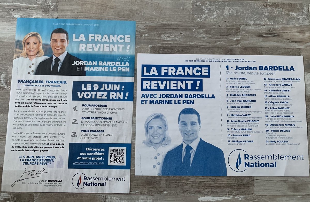 Profession de foi et bulletin de vote reçu. Ne vous trompez pas. Prenez bien le bulletin de vote à droite. Ne confondez pas avec la profession de foi. #VivementLe9Juin #DimancheJeVoteBardella