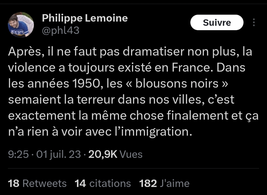 Latiole | Azymantiop qui n'a visiblement pas assisté hier à la salve d'envoi chez les Adieu mon pote Message cité 1 fois Message édité par Latiole le 01-07-2023 à 14:29:26 |