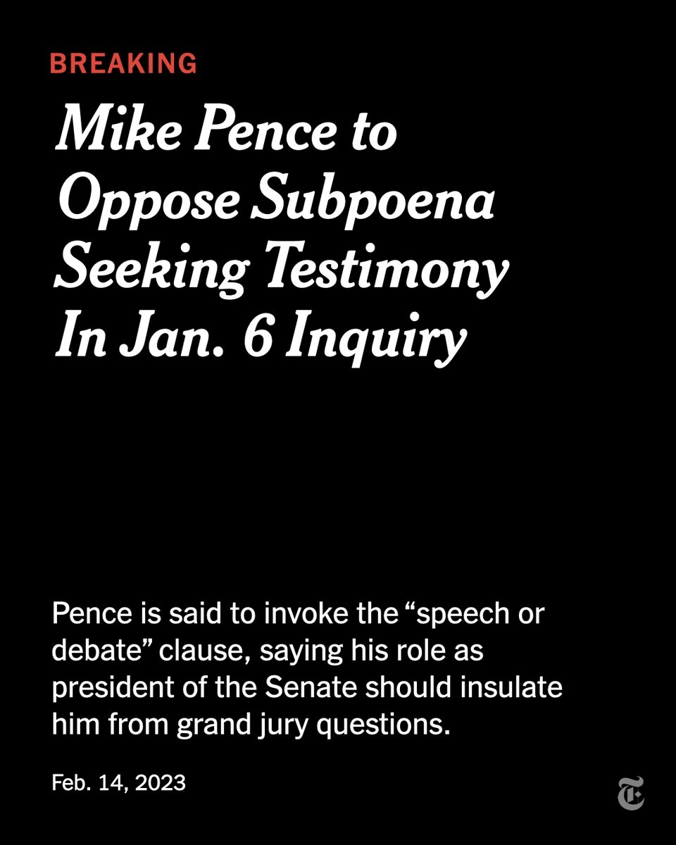 Breaking News: Former Vice President Mike Pence will fight a federal subpoena to testify about Donald Trump’s actions before the Capitol riot, a person familiar with his plans said. nyti.ms/3YwY04g