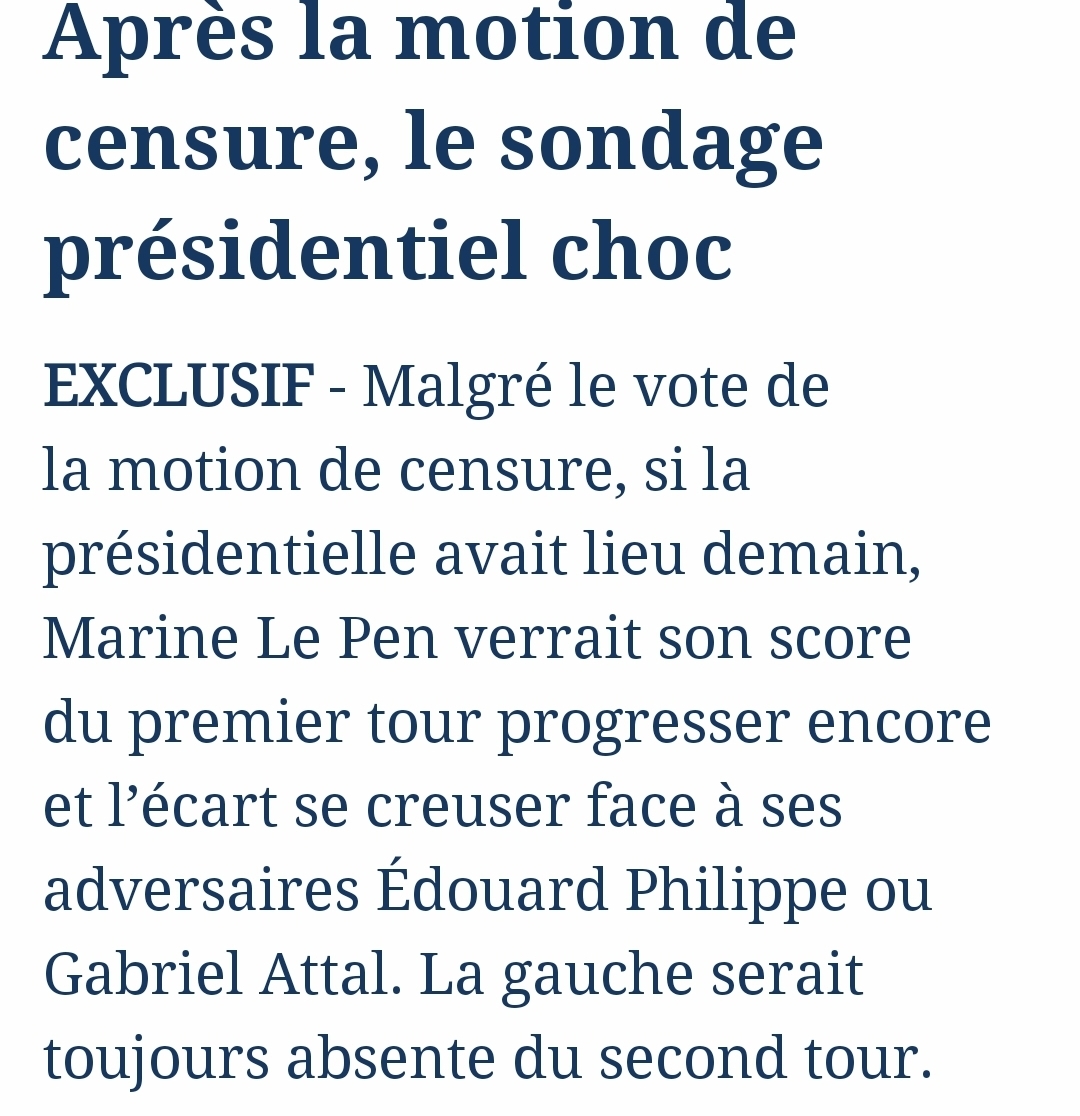 scénario classique du RN qui passe eazy le premier tour et qui, au 2nd, se prend un mur via une coalition des losers du premier tour Message édité par Cisko le 23-01-2025 à 16:48:04 |