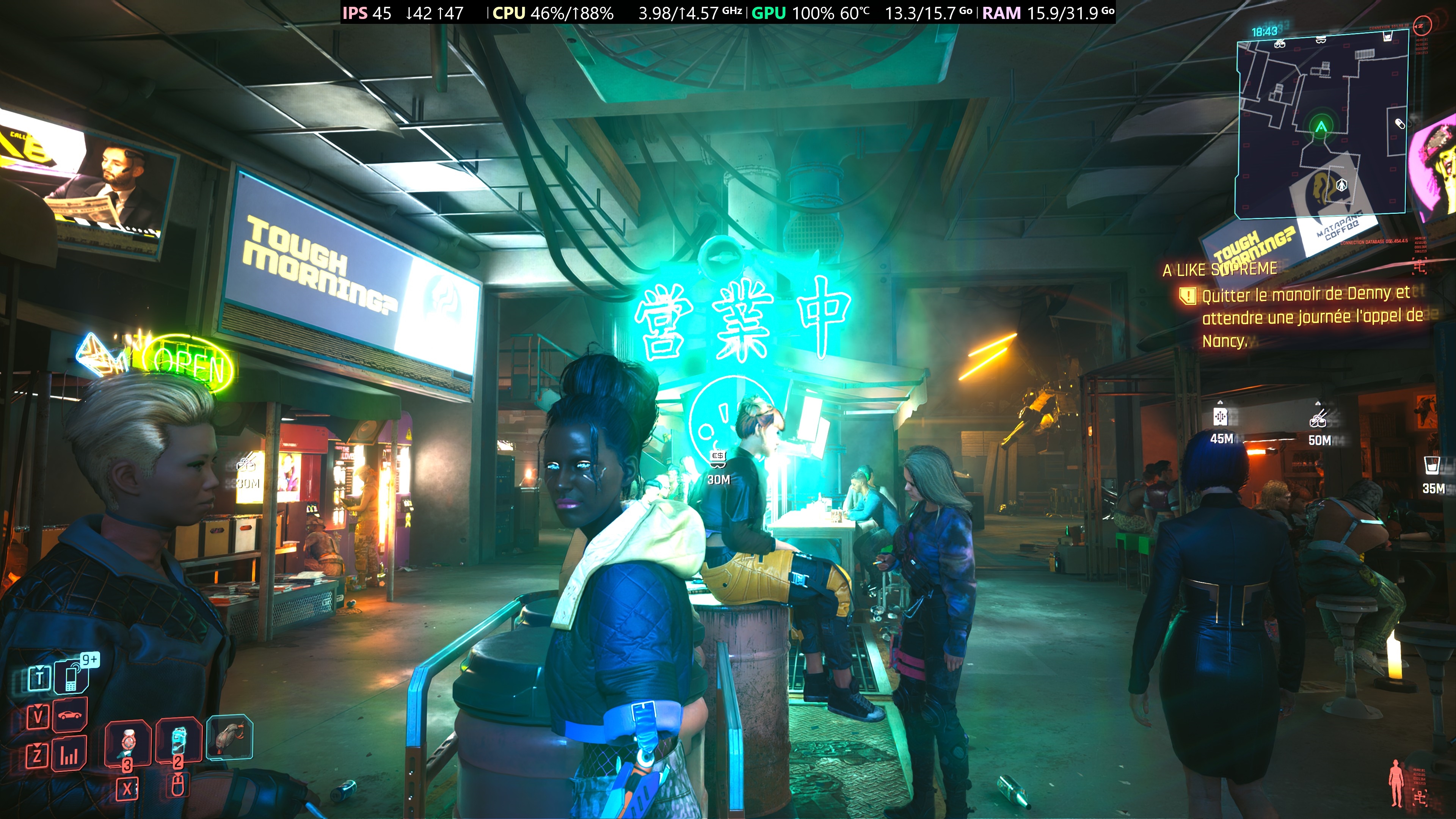 ohyes78 | Petite session de Cyberpunk 1h30 5060 ti 16go PT 4k Ultra DLSS 4.5 UV OC @975mV 3060mHZ moyenne 55 i/s aucun plantage!
