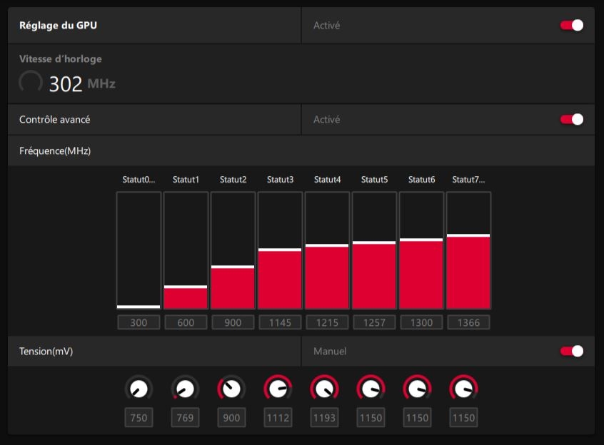 Antionn | Je sais pas ce qu'ils prennent chez XFX, mais faudrait penser à réduire les doses là A priori il s'agirait d'une XFX RX580 GTS XXX Edition, que mon frère a récupéré il y a deux jours pour un pote à lui. Évidemment, j'ai pas résisté à la mettre dans le PC pour voir le temps qu'elle reste à la maison (même si je n'ai pas encore eu le temps de la tester). Je sens un petit UV et une refonte de la table fréquence/tension qui va donc probablement devoir s'imposer à la première vue de ce magnifique setup de base Edit : le second BIOS (je viens de découvrir qu'il y en avait deux) est encore plus étrange : Les fréquences sont complétement à la ramasse (mais les tensions sont ce coup-ci, logique), mais la VRAM a un bon OC ... ce qui ressemble à un profil de minage (?) Message cité 1 fois Message édité par Antionn le 24-11-2021 à 11:40:42 --------------- Mon topic achat // [TU] Radeon Software // [TU] AMD RDNA2 - RX6x00 |