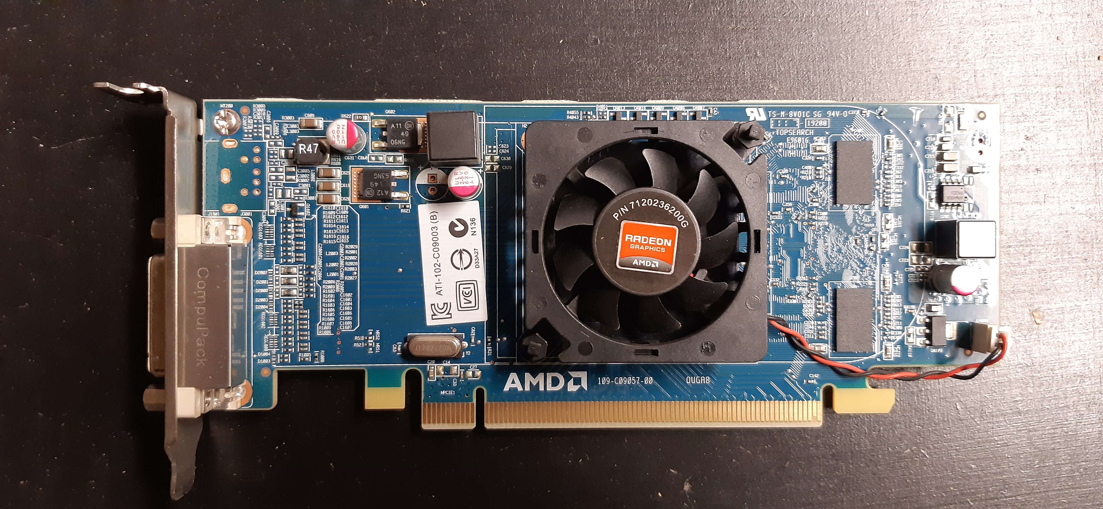 Une Dell Radeon HD 6350, reconnue par les drivers comme une HD 5450 , en même temps c'est la même puce, mais quand même...