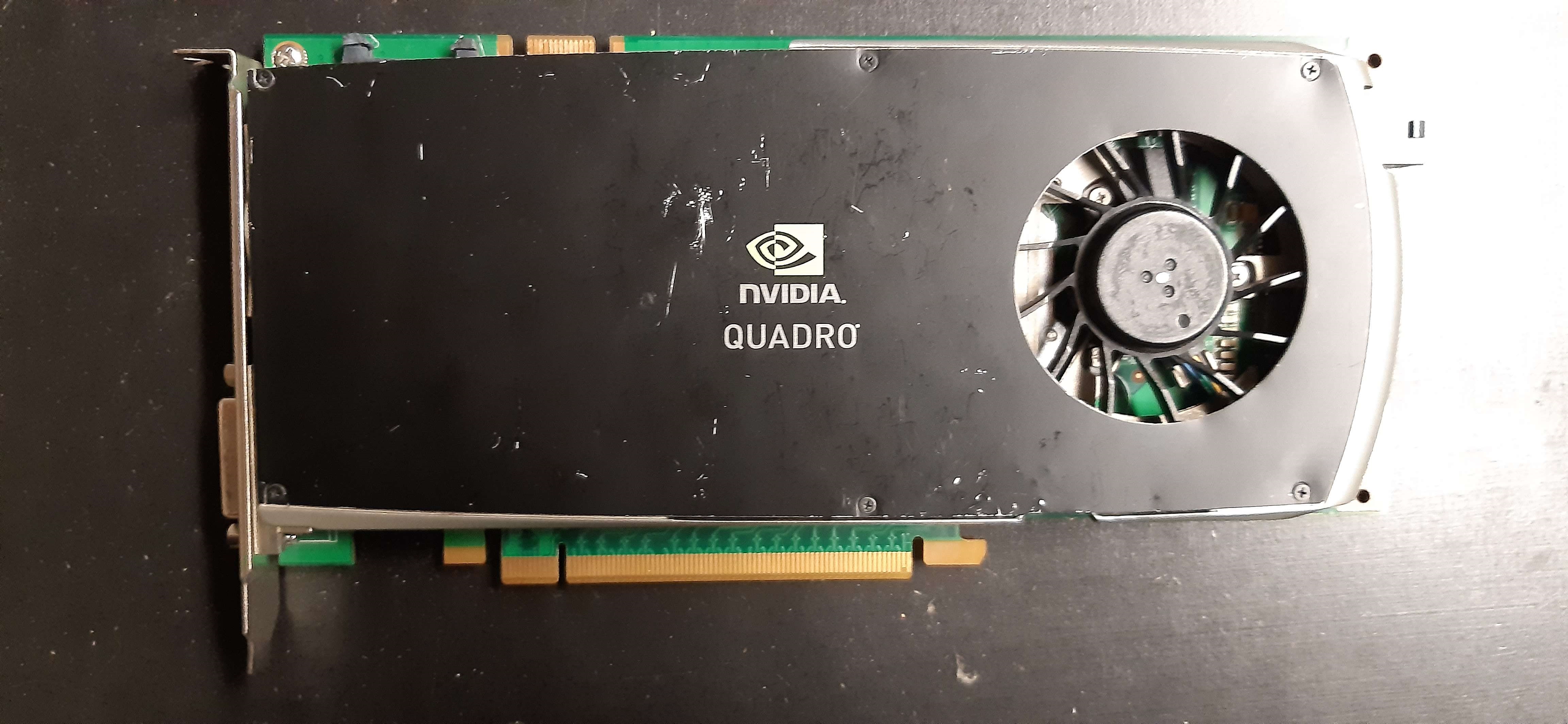 Une Quadro FX 3800, qui a vu des jours meilleurs, mais qui marche, à priori.