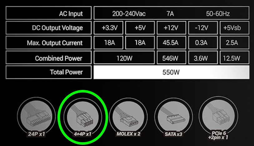 J'ai voulu acheter l'alimentation Mars Gaming MPIII550P https://www.amazon.fr/dp/B0DDBZP8QS mais elle n'a pas le connecteur 4-pin EATX12V. J'ai du la renvoyer.