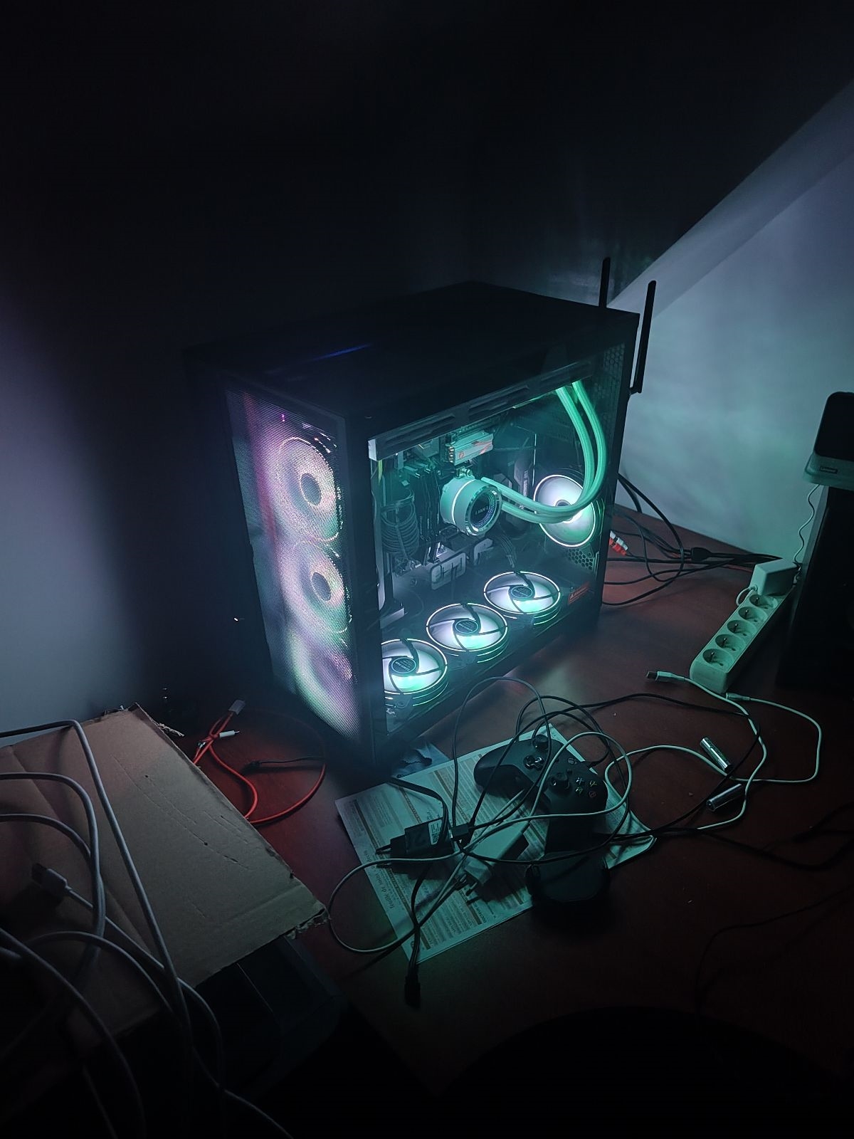 headquaker | y a juste les tubes de l'AIO qui me dérangent un peu... en reverse ils sont trop court pour que le radiateur soit mis dans l'autre sens (entrée/sortie des tubes sur la gauche du coup) et trop long pour que ce soit dans le sens comme sur la photos (ça arrive vraiment contre la vitre ou presque, j'ai réussi à bloquer les tubes contre le métal du boitier...). Du coup ils font une grosse boucle pas très jolie.