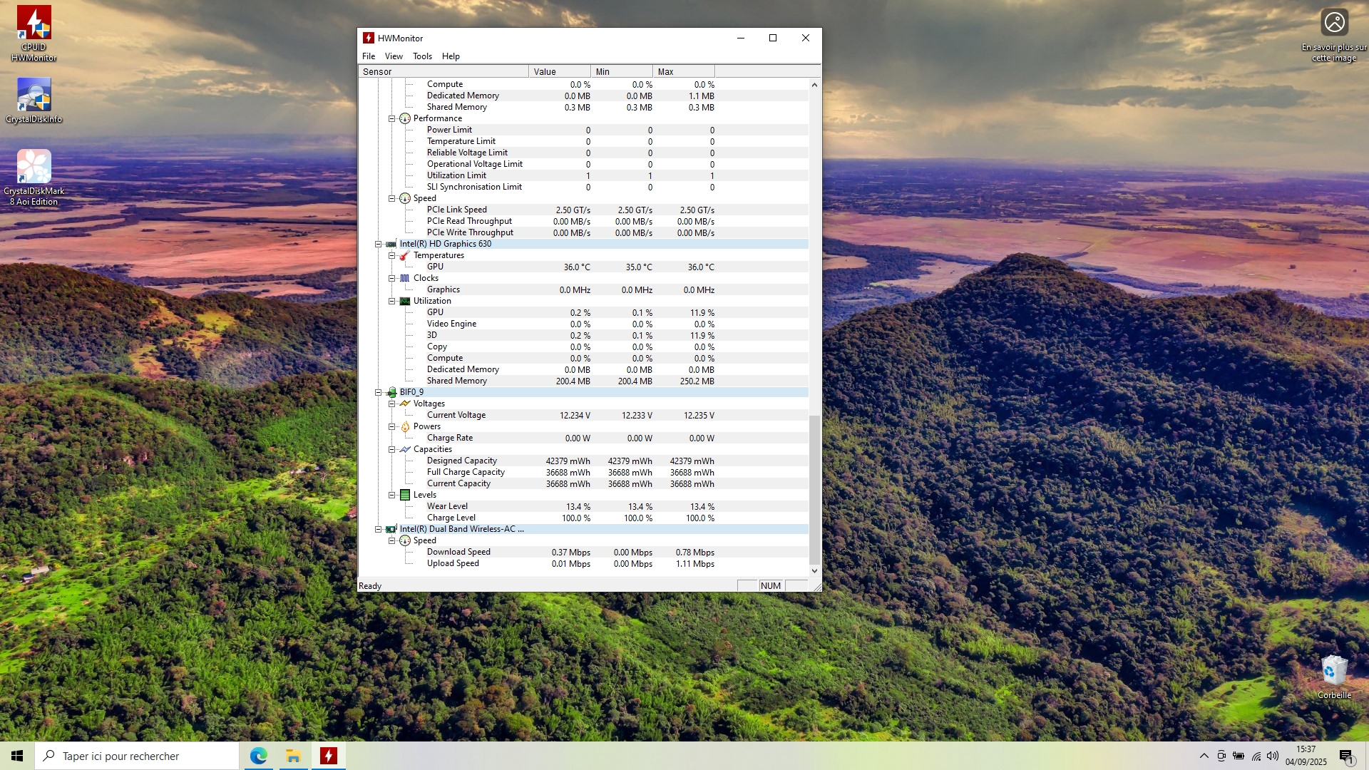 Hardware monitor Intel(R) Dual Band Wireless-AC 3168