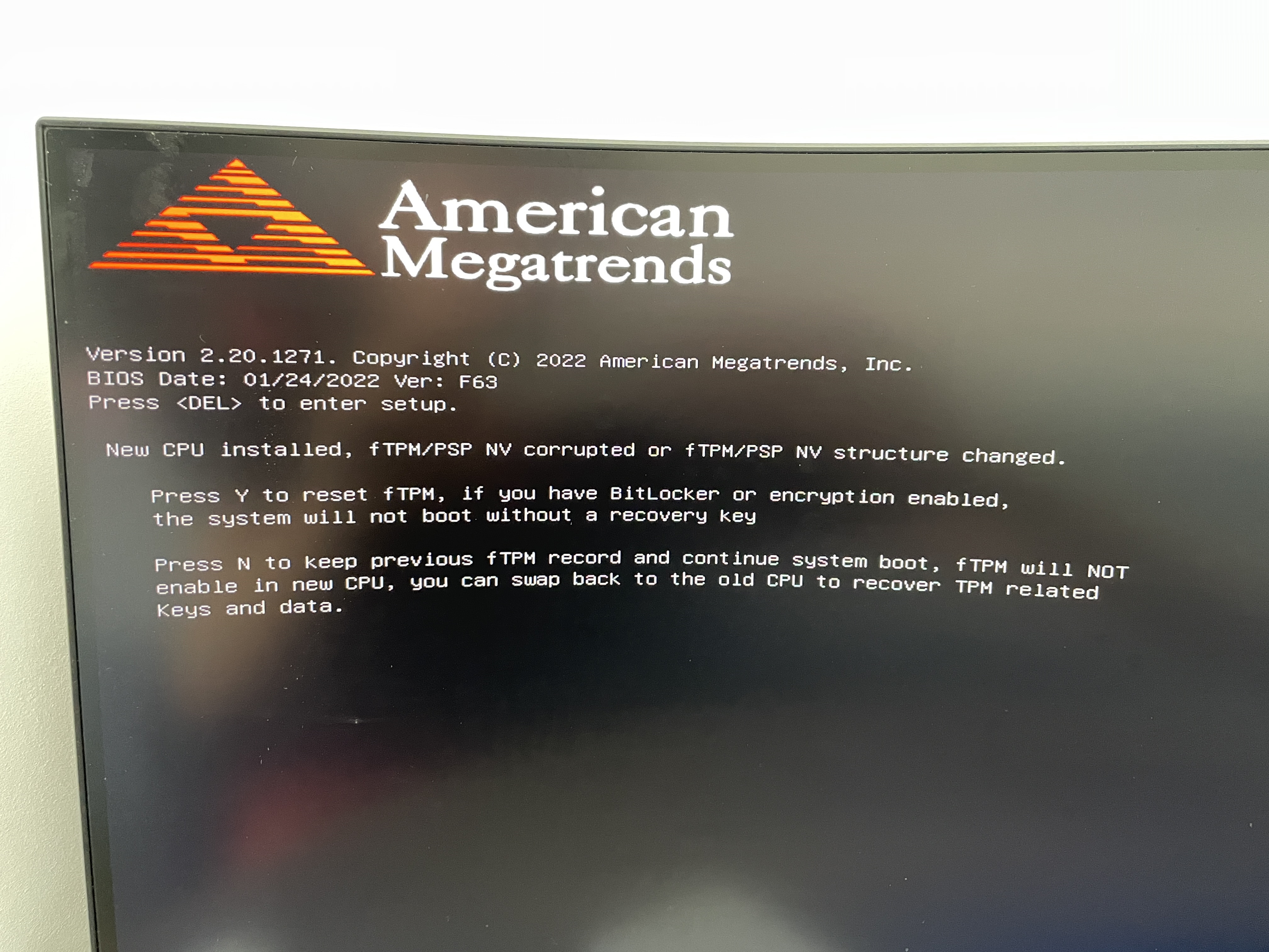 ip-man 永春 | pour le message, il faut appuyer sur Y (yes) ce qui va réinitialisé le ftpm avec ton nouveau cpu.