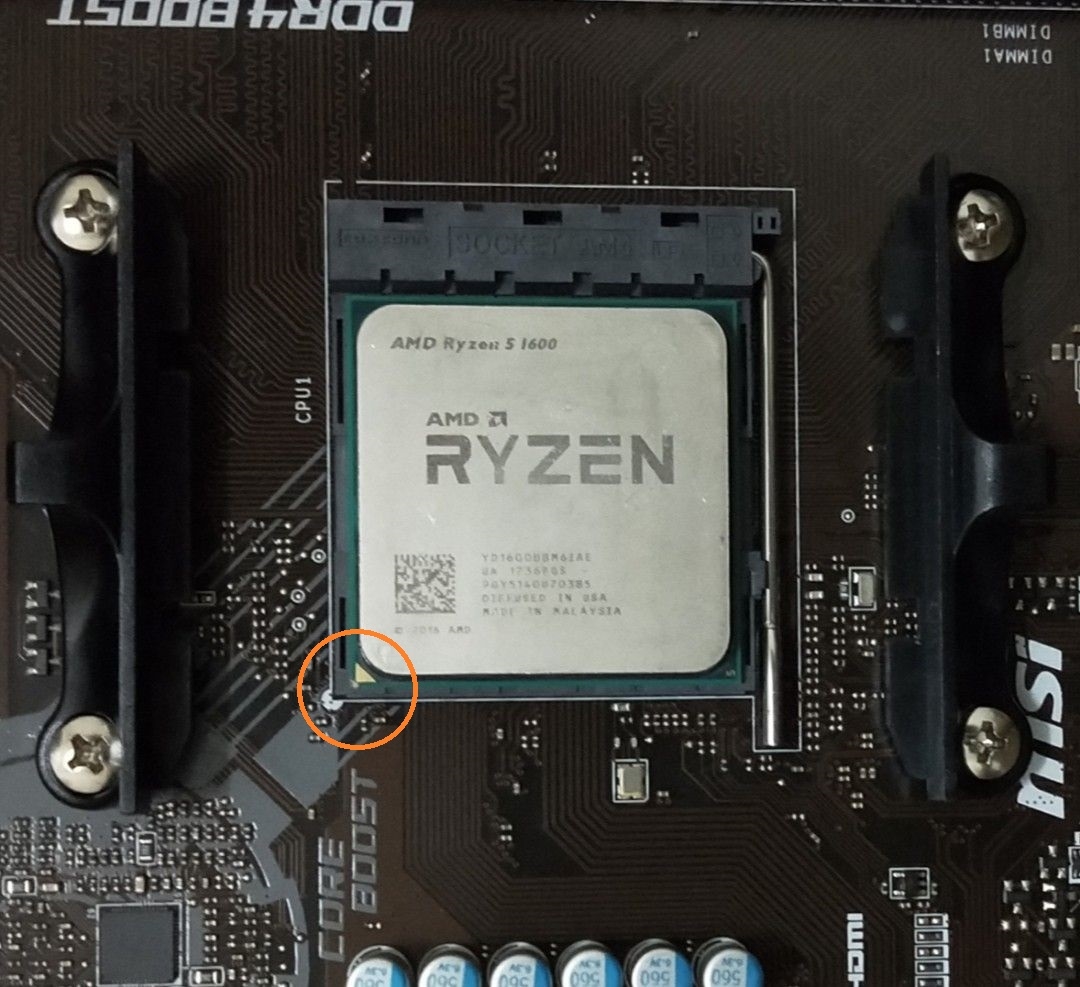Umi | Si ça ne rentre pas c'est que ce n'est pas la bonne orientation. Regarde les coins, il y en a un avec une petite flèche, ici en bas à droite. La flèche est aussi visible sur le dessus du CPU. Il faut l'aligner avec le coin inférieur gauche du socket: EDIT Message édité par Umi le 05-09-2024 à 12:48:40 --------------- Depuis le 15/12/2000, le livre de vie est lisible sur www.lelivredevie.com |