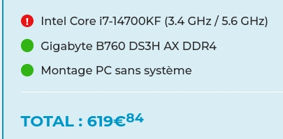 chevalier2000 c'est parti Win7 en 2025 | oui partir sur AM4 avec par exemple le ryzen 5700x ou sur intel avec le i5 14400F ou 14600KF --------------- |