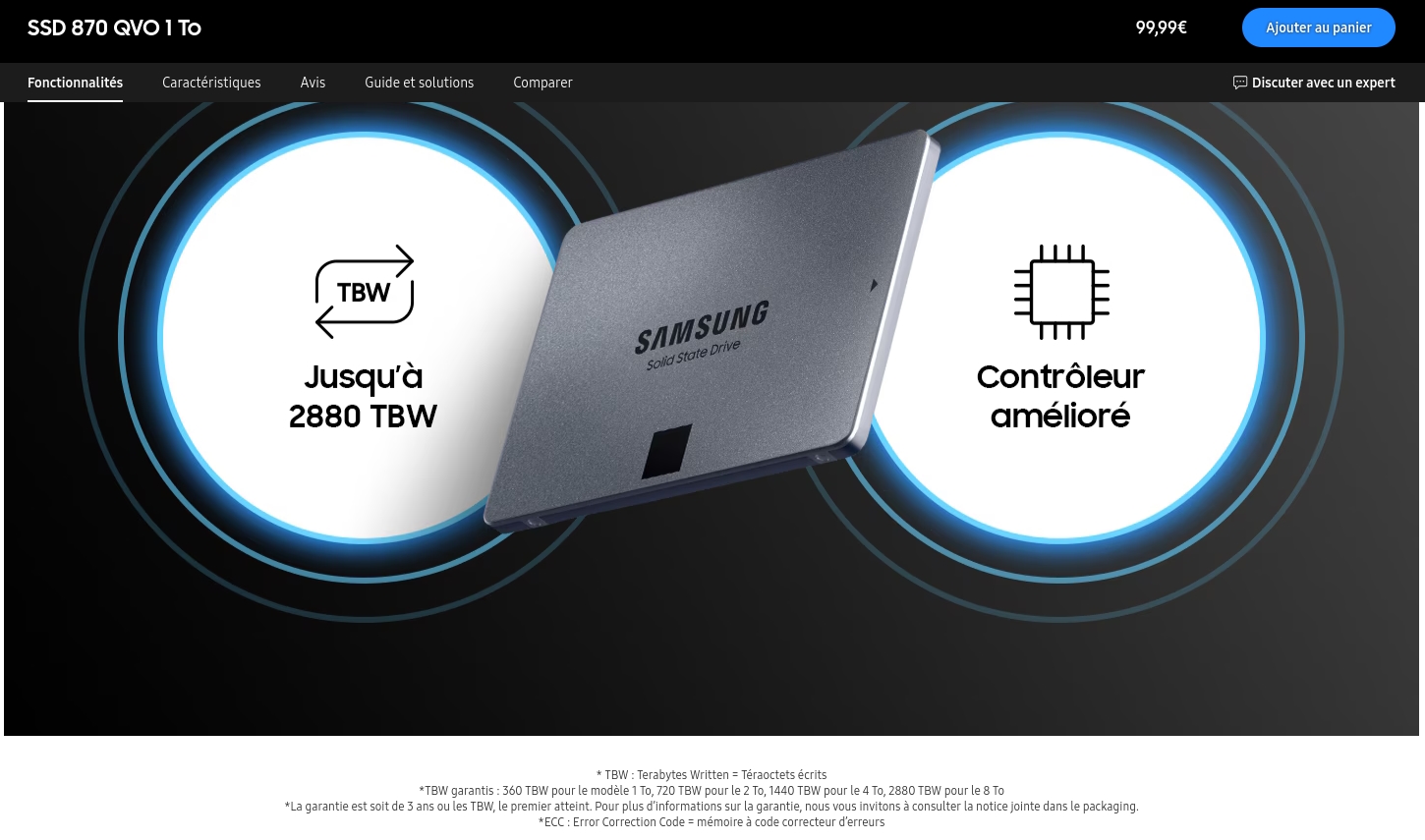 Sur le 870 QVO (lien ci dessus), le 1To est annoncé pour 360 TBW, c'est écrit en tout petit sous le visuel marketting :