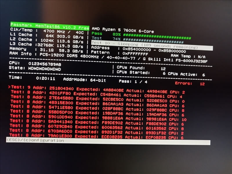 shaka-31 | Bonsoir je vais voir pour la version memtest pas fait gaf , après sa me décourage pas d'amd déjà eu pas de probleme particulier, je veux juste savoir d'où viens le probleme et profiter de mon matos, d'où le passage sur le forum, bcp ont plus de connaissance que moi. c'est même pire avec une version plus récente Par contre si quelqu'un peut m'expliquer a quoi correspond la partie cpu au bout de chaque ligne d'erreur Message cité 1 fois Message édité par shaka-31 le 30-12-2022 à 19:50:57 --------------- PSN Udead31 / GT Yegg4r /Battle.net Yeggar |
