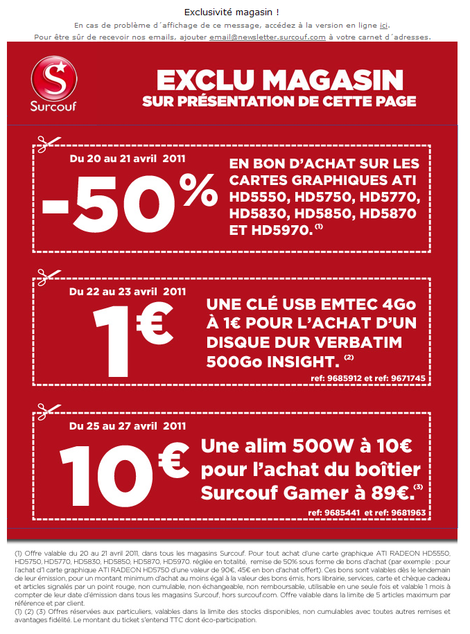 newbee Alias : 0liveO1 | Bon valable en magasin Surcouf (le premier étant vraiment intéressant si on a d'autres achats à faire) :