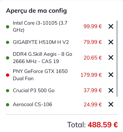 Et encore, le GPU n'est pas dispo, j'ai juste choisi la moins chère des GTX 1650 dans la liste.