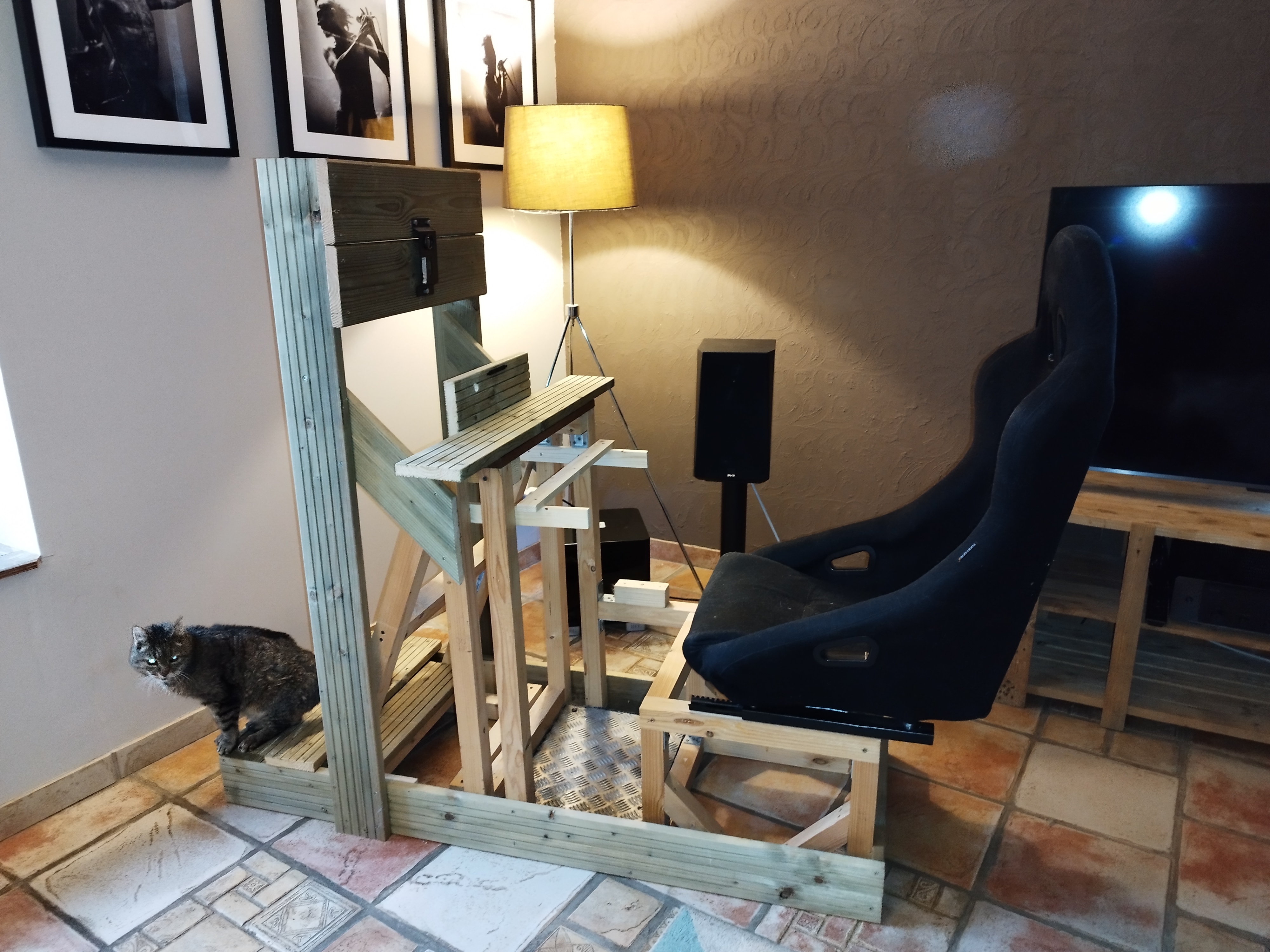 Oui, et pourtant ... avec un seat mover les mouvements relatifs du siège par rapport au reste est très efficace et trompe bien le cerveau (bien + qu'un full mobile à mon sens). L'idée est d'aller un cran plus loin en ajoutant le heave mais en gardant ce principe. Race beyond matter l'explique bien ici : https://www.youtube.com/watch?v=mRNYnpqrHxs Je sais donc que je ne prends pas de risque sur ce principe. Là où c'est + expérimental, c'est le surge uniquement du siège (combiné au belt tensioner). Je vais tester d'abord comme ça pour valider/invalider mon hypothèse. Si c'est pas bon, je testerai en full surge. Et je testerai aussi sans surge mais en mettant mon seat mover. Les 4 vérins feront le heave/pitch/roll et le seat mover les forces G. Message édité par zbineulongtime le 26-01-2025 à 10:52:02 --------------- . |