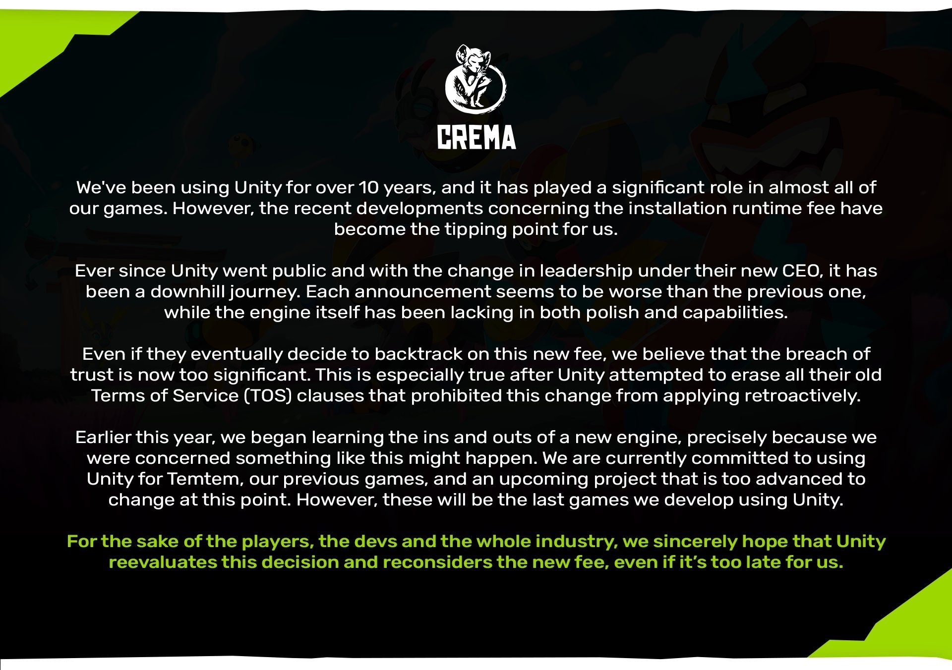 Zeross Transactions (0) | Juste pour vous montrer le niveau de toxicité qu'on atteint : https://www.eurogamer.net/unity-clo [...] ng-changes