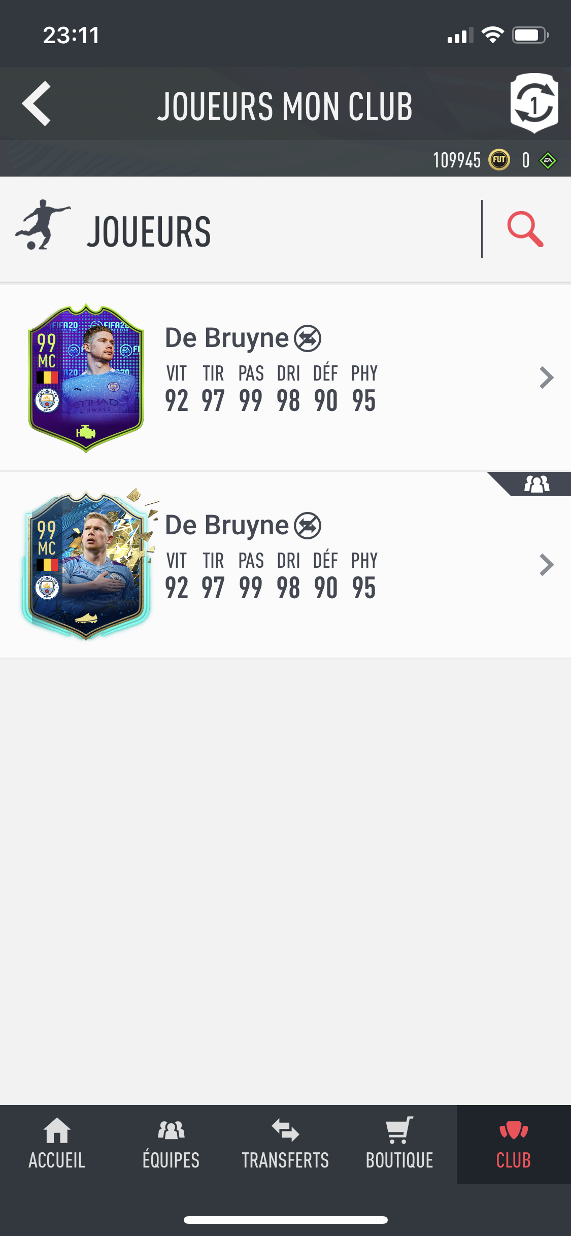 M_Solo91 Toffees fanboyTransactions (0) | Perso je me prends pas la tête pour le moment, ma team PL est déjà méga fat, en plus de KDB, VD et AA TOTS, Greenwood et Pogba sont finalement également monstrueux, je monte de deux divisions d'ailleurs, et sans Icône Moment. |