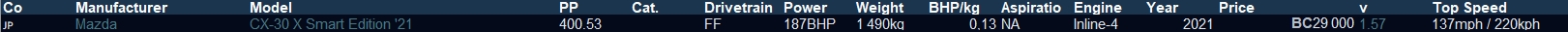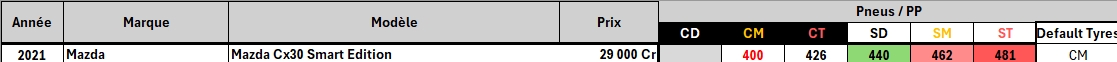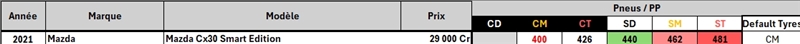 Exemple avec la CX-30 : L'autre table ressemble à ça : Message cité 1 fois Message édité par MiB75 le 07-10-2025 à 17:33:16 --------------- Feed-back - Ventes Jeux & Hardware |