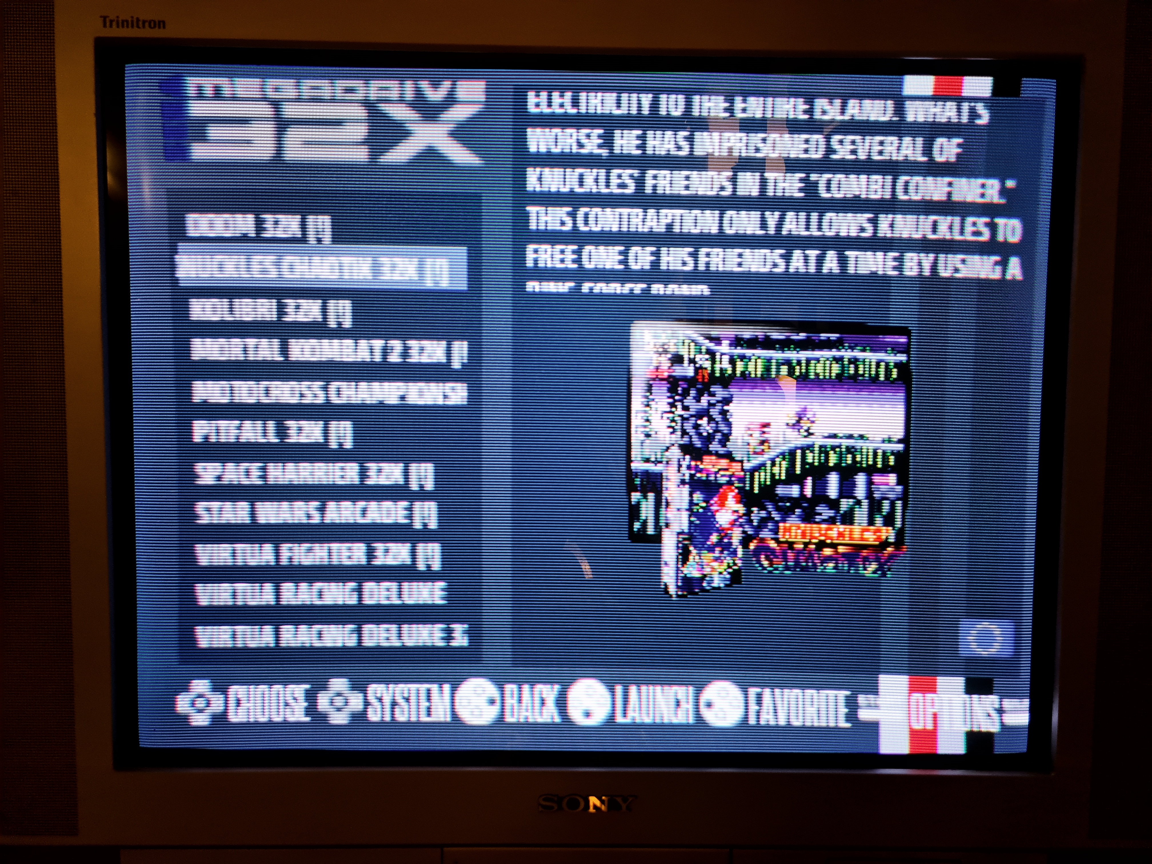 Alors je ne lance absolument pas de theme CRT, j'ai installé recalbox hier, et je l'a branché sur mon LCD pour tester le truc en attendant de recevoir mon RGB dual, donc j'ai laissé les truc par défaut, et testé quelque jeux MD et SNES. Je testerai sur ce CRT ce soir si j'ai bien recu le rgb.