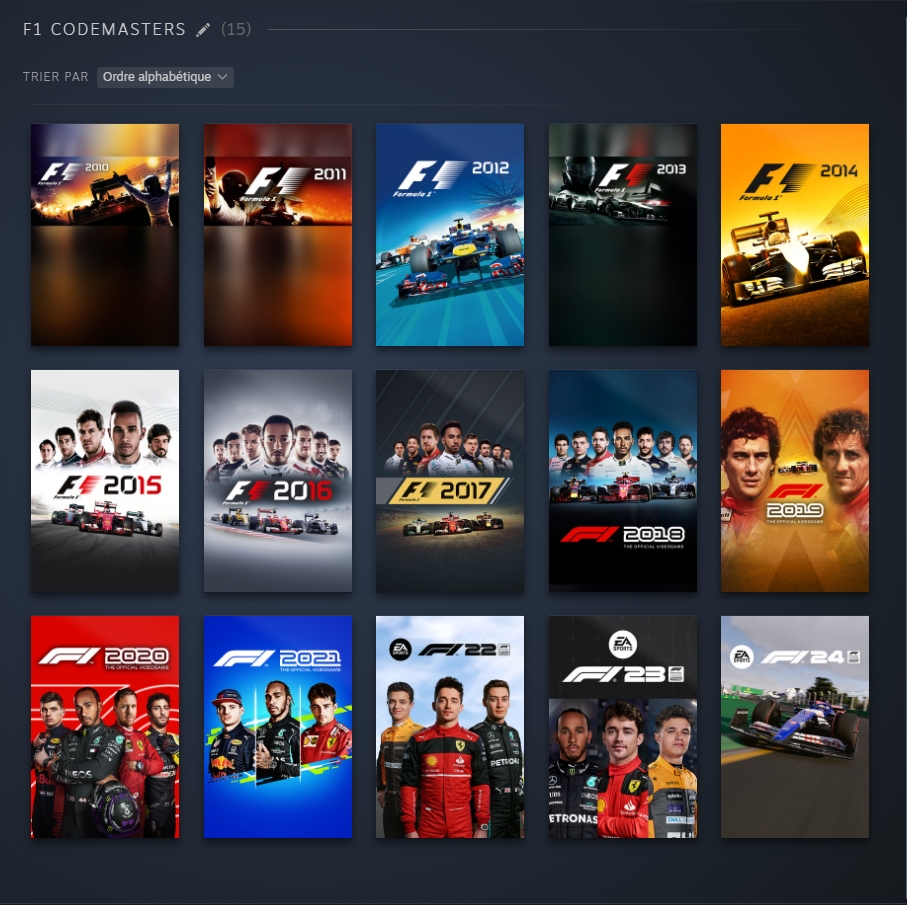 alffir Transactions (5) | Reprise du message précédent : Par contre j'ai sauté le 23, EA ne soldant plus les anciennes éditions, et je pense que le prochain sera le 26 pour le nouveau règlement et éventuellement des nouveaux circuits, vu le peu que je joue actuellement aux jeux F1 (plus de 100h sur F1 2019, mais guère plus de 10h sur F1 22). --------------- Il vaut mieux mobiliser son intelligence sur des conneries que mobiliser sa connerie sur des choses intelligentes. |