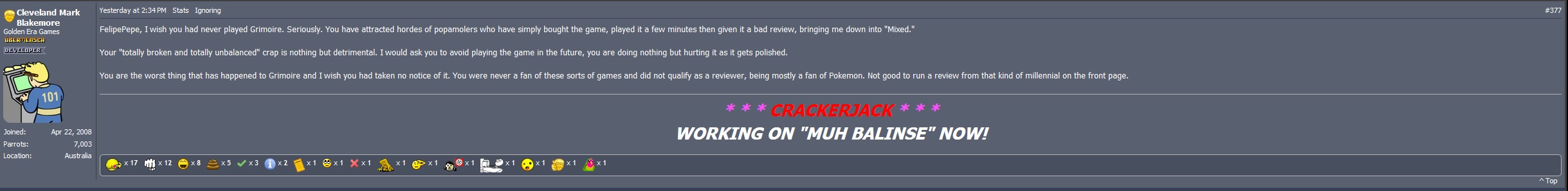 Faut pas voir du troll de vendredi partout. Je trouve que c'est une discussion intéressante sur l'évolution du jeu vidéo et la vision de chacun par rapport à ce média. Ça change des "pubg quinze millions de vente". |