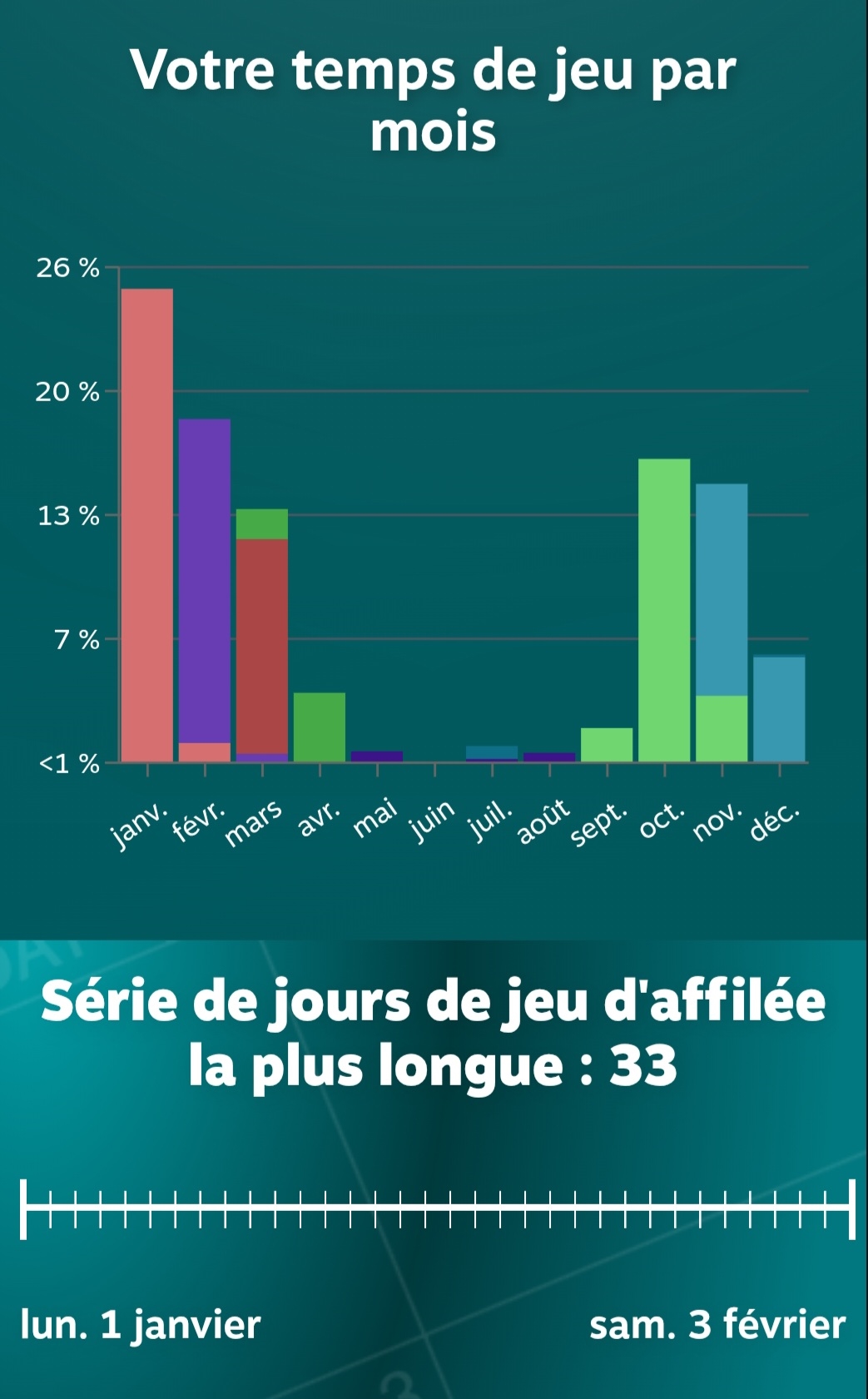 mathieuu Transactions (2) | Je trouve pas le temps de jeu complet mais bon mon top 3 : POE 66% , POE2 11% , Diablo4 8%