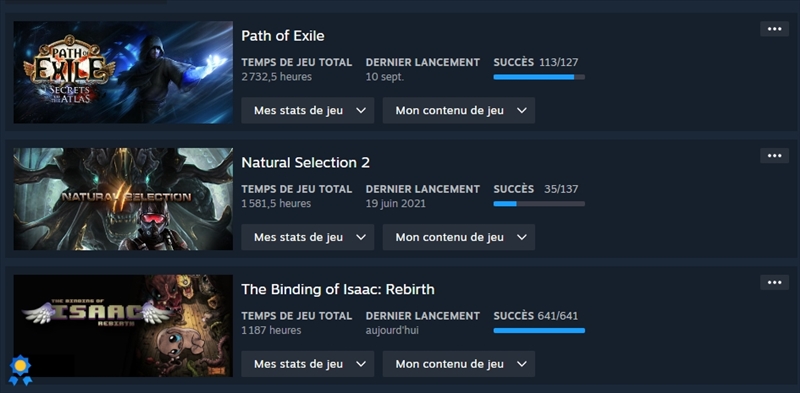 Kikasstou Joueur à temps partielTransactions (5) | Ceux qui ont plus de 2000h sur plusieurs jeux ca se passe comment? Vous êtes streamer pro de JV et vous faites ca toute la journée? Ou vous avez joué qu’a 4 jeux non stop dans votre vie? Ou alors vous avez arrêté de dormir? Nan parce que pour un mec moyen sans vie sociale qui jouerait toutes les soirs 5h en rentrant du taf/ecole, ca fait quand même 400 jours pour arriver a 2000h. En faisant que ça non stop. Même dans ma période junkie WoW ou je ne faisais que ça pendant 5 ans il ne me semble pas avoir réussi a atteindre les 2000h (je ne sais pasnsd’ailleurs si on peut voir ca quelque part autre que le /played sur chaque perso ingame) |