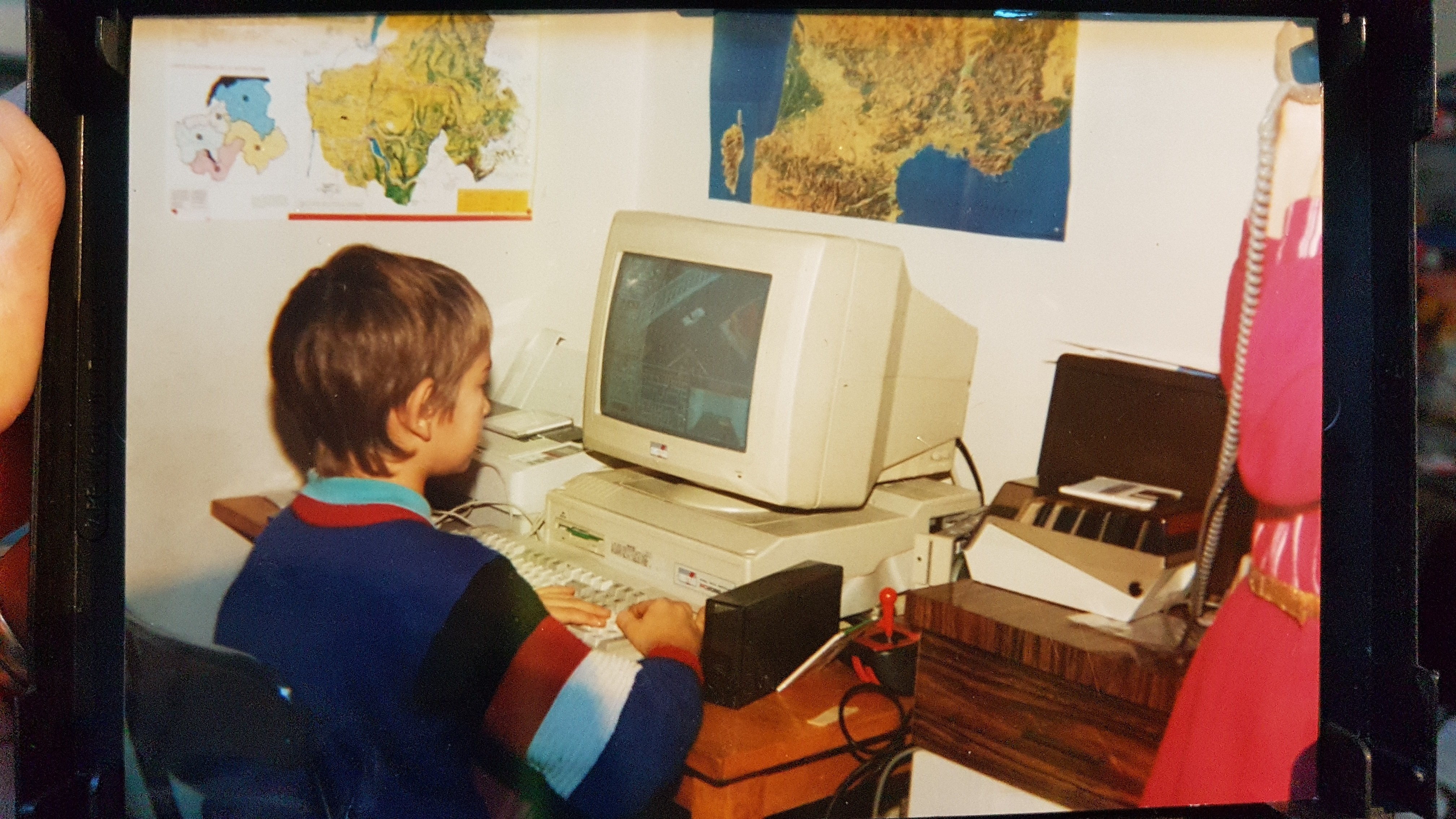 D'autres jeux me viennent en tete : -Indy500 (mais c'était sur le 2086) avec les ralentit des accidents Concernant la photo, c'est moi qui avait pris la photo de mon frère en train de jouer à Chicago90 sur le 2086 et on voit ma mère qui téléphone avec le bon vieux tel a cadran : Pour l'imprimante, le ruban couleur coûtait tellement cher qu'on a du le remplacer qu'une seule fois, a la fin ca faisait des couleurs complètement délavées. Et beaucoup de logiciels de supportaient pas l'impression couleur. Message édité par LaMoR le 02-10-2025 à 11:36:06 |