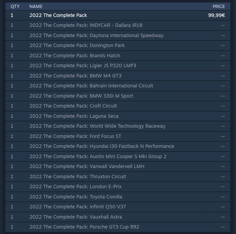 Produisant une expérience de conduite qui ne manquera pas de garder les conducteurs sur leurs gardes comme seule une voiture Porsche Cup peut le faire, il s'agit d'un véhicule brutal mais engageant qui offre un petit quelque chose pour tout le monde - tout en faisant ce bruit Porsche époustouflant auquel nous sommes tous venus. l'amour ces dernières années. Construit avec une attention suprême aux détails - beaucoup d'entre vous attendaient patiemment celui-ci, et nous sommes presque sûrs que vous trouverez tous que cela valait vraiment la peine d'attendre ! BTCC Opel Astra La vénérable Astra arrive maintenant à la fin de son cycle de vie compétitif dans le championnat britannique de voitures de tourisme, mais malgré ses années d'avancement et son manque de développement ces derniers temps, la voiture reste une voiture de course à traction avant exceptionnellement agréable, et qui reste très populaire auprès des fans du sport – quelque chose que nous espérons transférer vers la version virtuelle dans rFactor 2. Avec un empattement plus court que la plupart des voitures de tourisme britanniques, l'Astra offre une expérience de conduite différente et plus vivante que la plupart des voitures de spécification NGTC - quelque chose qui, selon nous, sera très apprécié par notre communauté une fois que vous vous serez habitué à la nouvelle expérience de conduite. Mises à jour de contenu Ci-dessous, veuillez trouver des détails sur les différentes mises à jour de contenu qui ont été publiées dans le cadre de cette version de fin d'année : Daytona v1.17 Sebring v1.15 Nordschliefe v2.43 Circuit d'Azur v1.19 Laguna Seca v1.21 Botniaring v1.07 StockCar 2018 v2.25 Académie Caterham v1.11 Vanwall LMH v1.13 BMW 330 v1.17 Ford Focus v1.31 Hyundai i30 v1.31 Infiniti Q50 v1.37 Toyota Corolle v1.47 Boutique en jeu rFactor 2 N'oubliez pas qu'en août, nous avons mis en ligne la toute nouvelle boutique rFactor 2 dans le jeu - où les joueurs ont la possibilité de voir rapidement et facilement quel contenu est disponible dans la simulation, et d'identifier facilement les meilleures options d'achat et offres de vente sur chaque article disponible pour rFactor 2. Présenté dans un design beaucoup plus rationalisé et intuitif que le magasin Steam par défaut, avec une simplicité supplémentaire pour vous aider à comprendre quels éléments se trouvent déjà dans votre inventaire Steam, le nouveau magasin en jeu rFactor 2 est vraiment le meilleur moyen de parcourir et d'acheter du contenu dans rFacteur 2 ! La version finale de 2022 est arrivée - nouvelles voitures, nouvelle mise à jour de la saison pour le BTCC et beaucoup de plaisir à avoir - merci à tous d'avoir fait de 2022 une année fantastique pour rFactor 2 - profitez des vacances festives et à bientôt sur la bonne voie ! Message édité par siro'd'13 le 21-12-2022 à 16:56:37 |