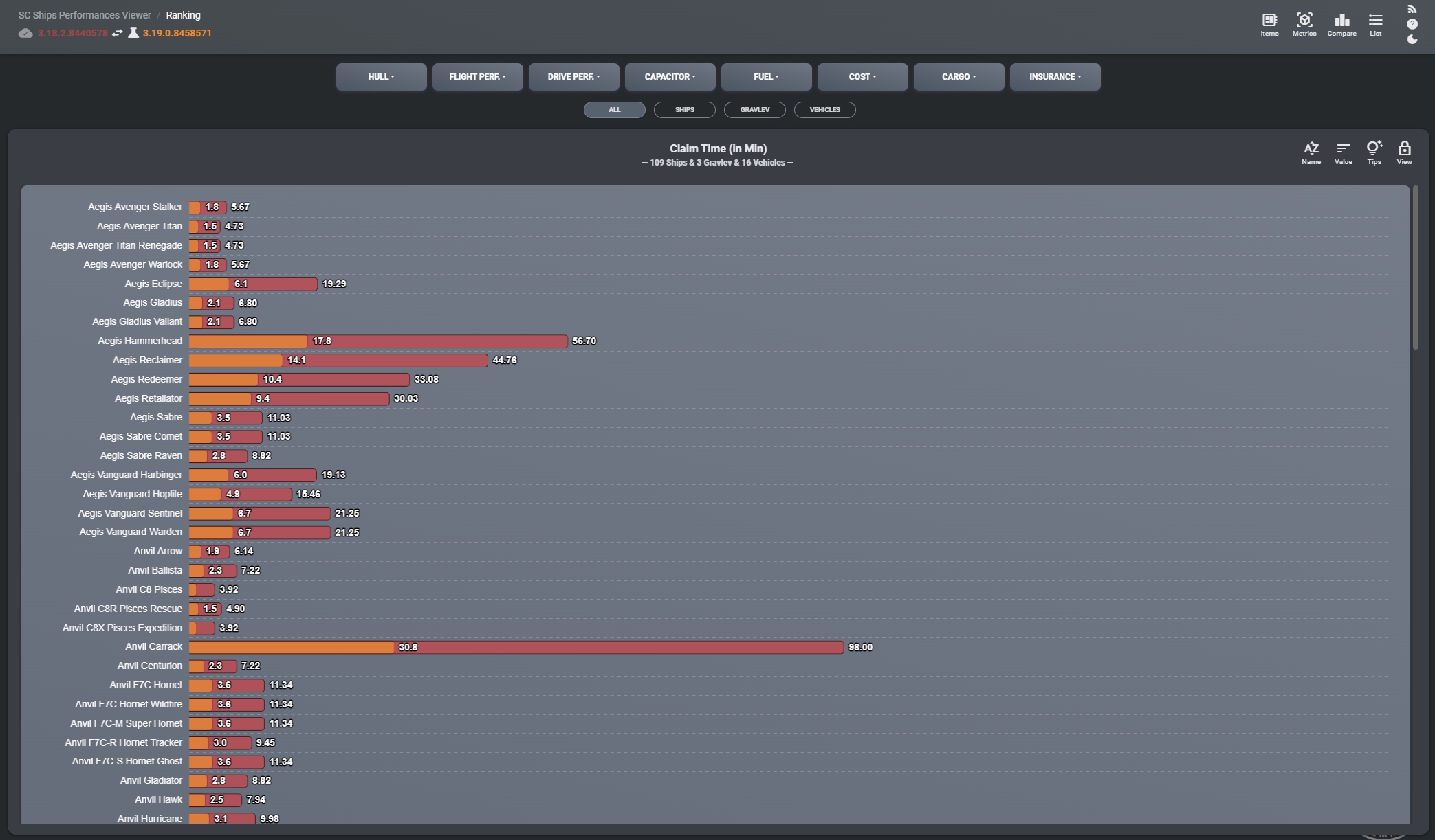 --------------- Star Citizen Ships Performances Viewer |
