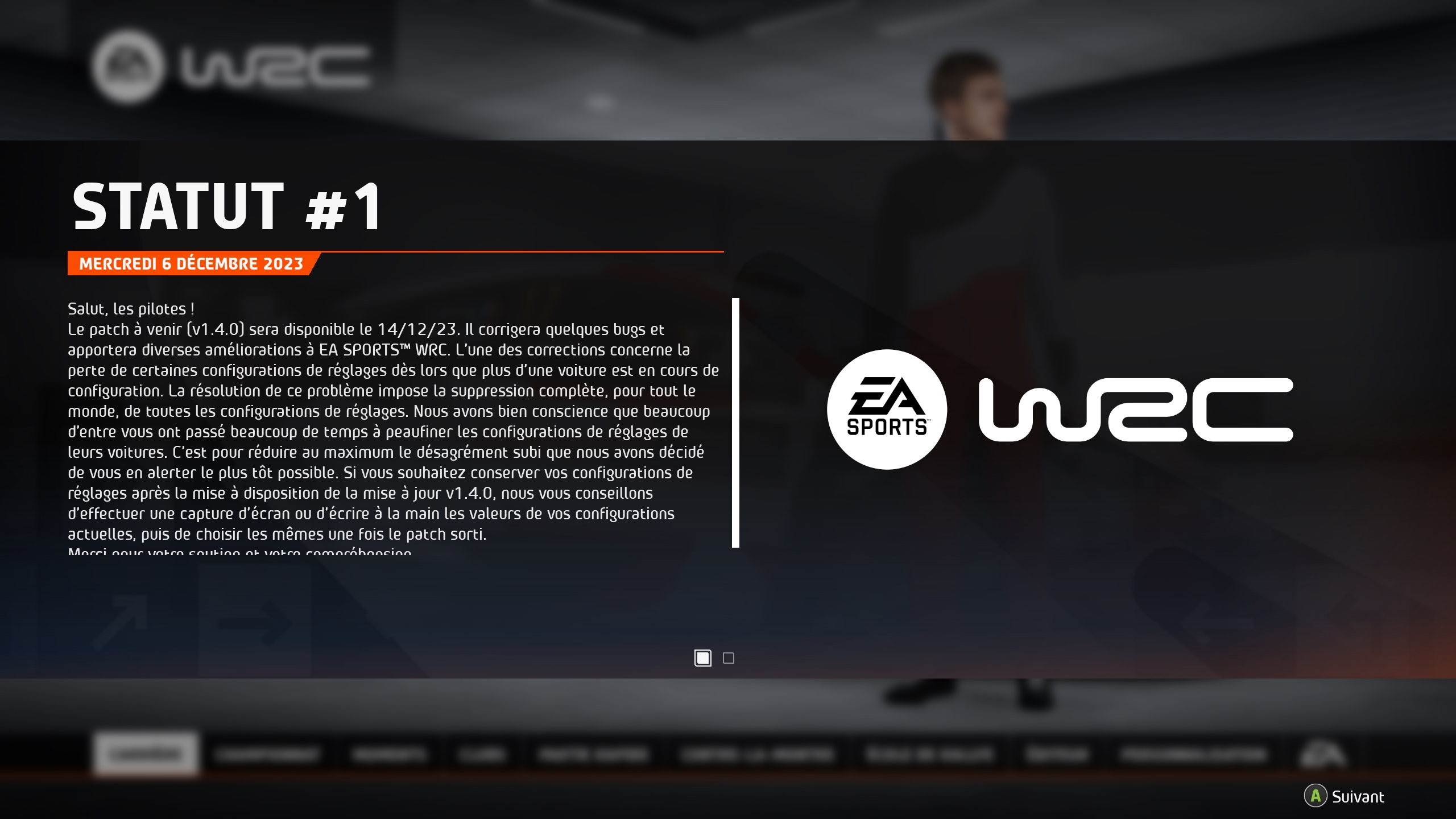 bozoleclown Transactions (0) | mise a jour a venir pour EA WRC le 14/12 mais ce soir en lançant le jeu j'ai ce message: Message cité 1 fois Message édité par bozoleclown le 06-12-2023 à 20:21:41 |