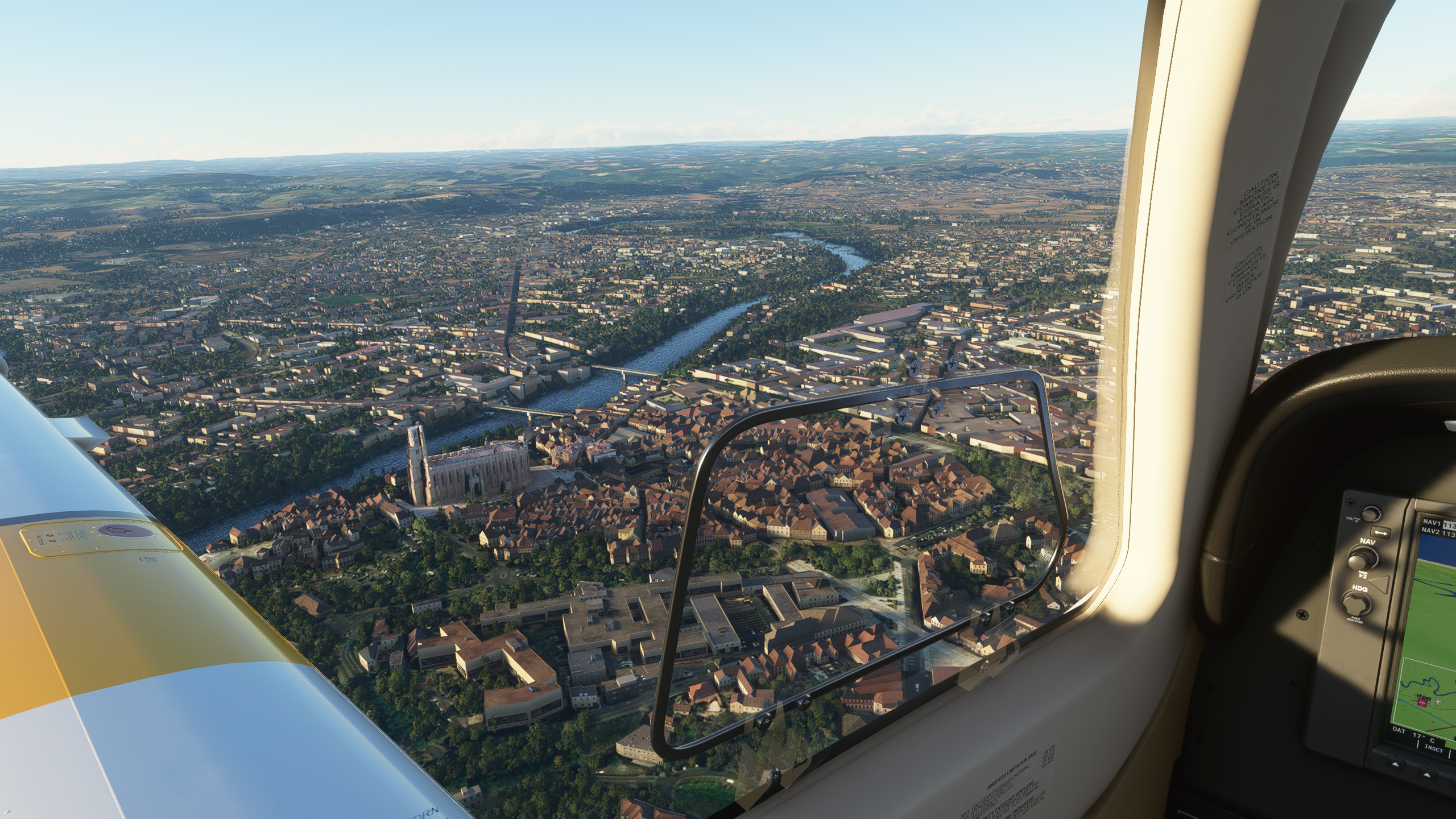 Je vais commencer par m'aider du VOR Gaillac-Castelnau que je vais rejoindre puis prendre un cap grosso-modo à 90 pour viser Albi et s'aligner avec le Tarn Albi en vue Avec un tel coucou, ce serai dommage de ne pas profiter des méandres interminables du Tarn pour faire le mariole très bas Vous aimez mon vacarme les chatelins ?