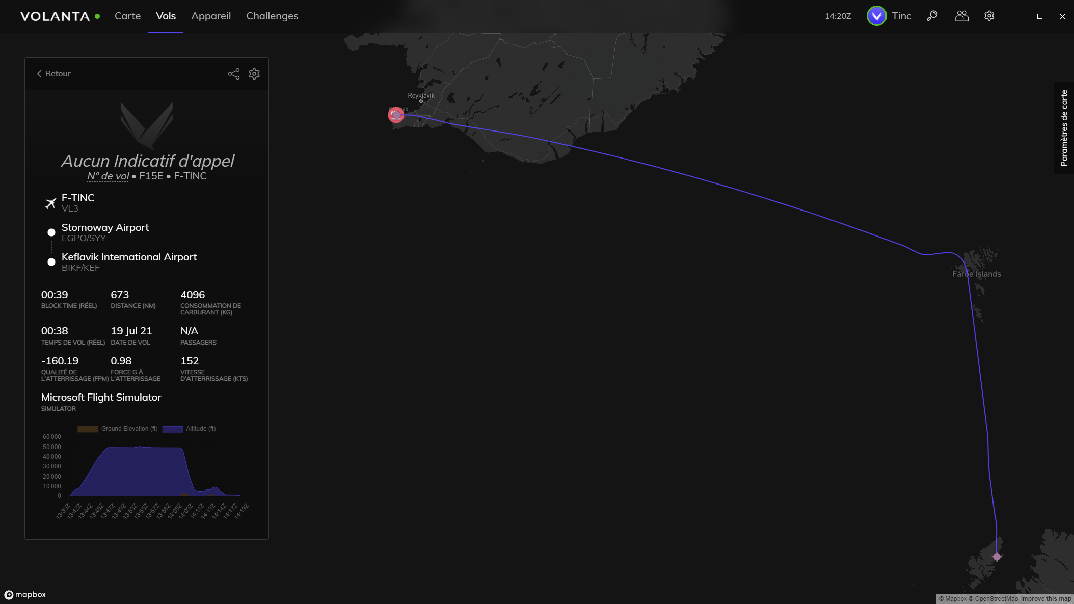 tiibo A chacun sa façon de voyager.Transactions (0) | #Rallye #CTP Leg#2 EKVG-BIAR Départ sous la brume habituelle des Féroés Départ sur la 13 ; les locaux resteront au calme aujourd'hui. Notre vue pour les 2 prochaines heures... Le Vénérable penche un peu à droite - enfin encore plus que d'habitude. Je ne sais pas ce qu'ils ont picolés aux îles mais le réservoir auxiliaires gauche a été entièrement siphonné ! Je passe donc les 2 ventilos dessus. Je checkerai régulièrement pour éviter de me faire une TBone Vent du Sud, l'approche par la 19 sera une première pour moi. Dommage j'aurais bien voulu vous montrer les PAPI décalés de la 01. Je décide une approche ''touristique à vue''. Vent arrière par la vallée, à la Innsbruck. L'approche est simple mais tout aussi belle que son opposée Touché - mine de rien ça vente. Et en route pour une partie de biar. Message cité 1 fois Message édité par tiibo le 20-07-2021 à 23:40:00 |