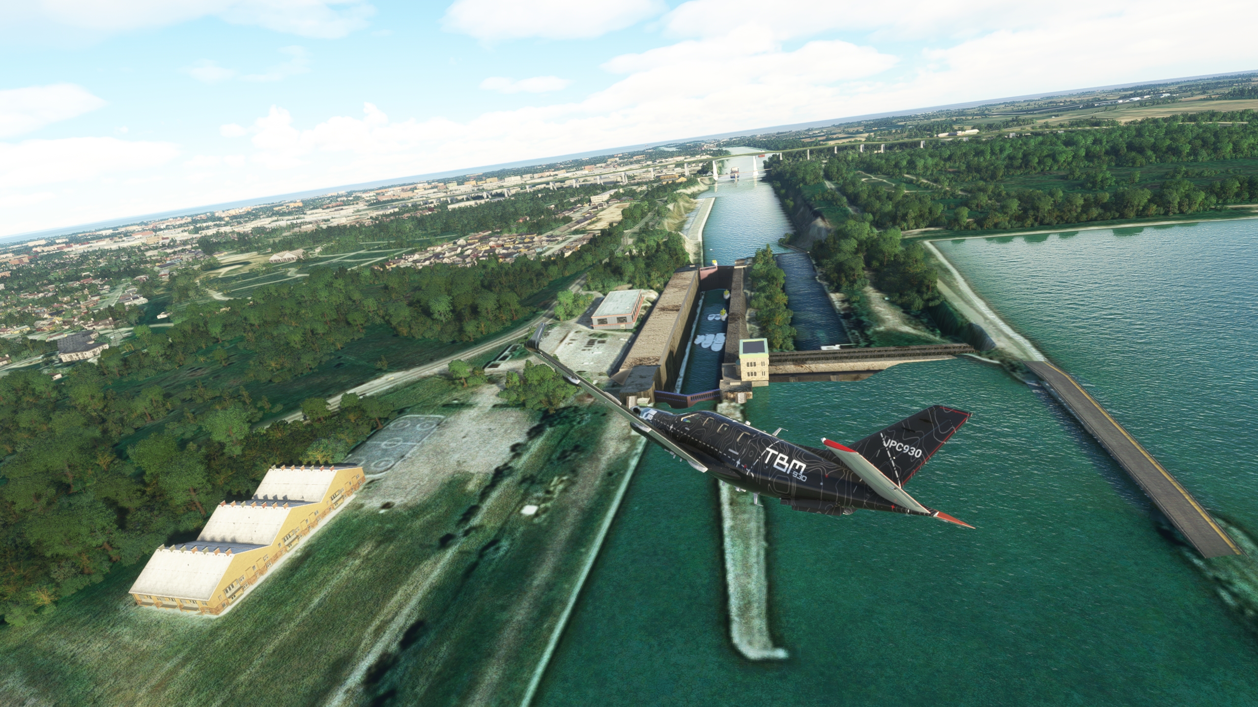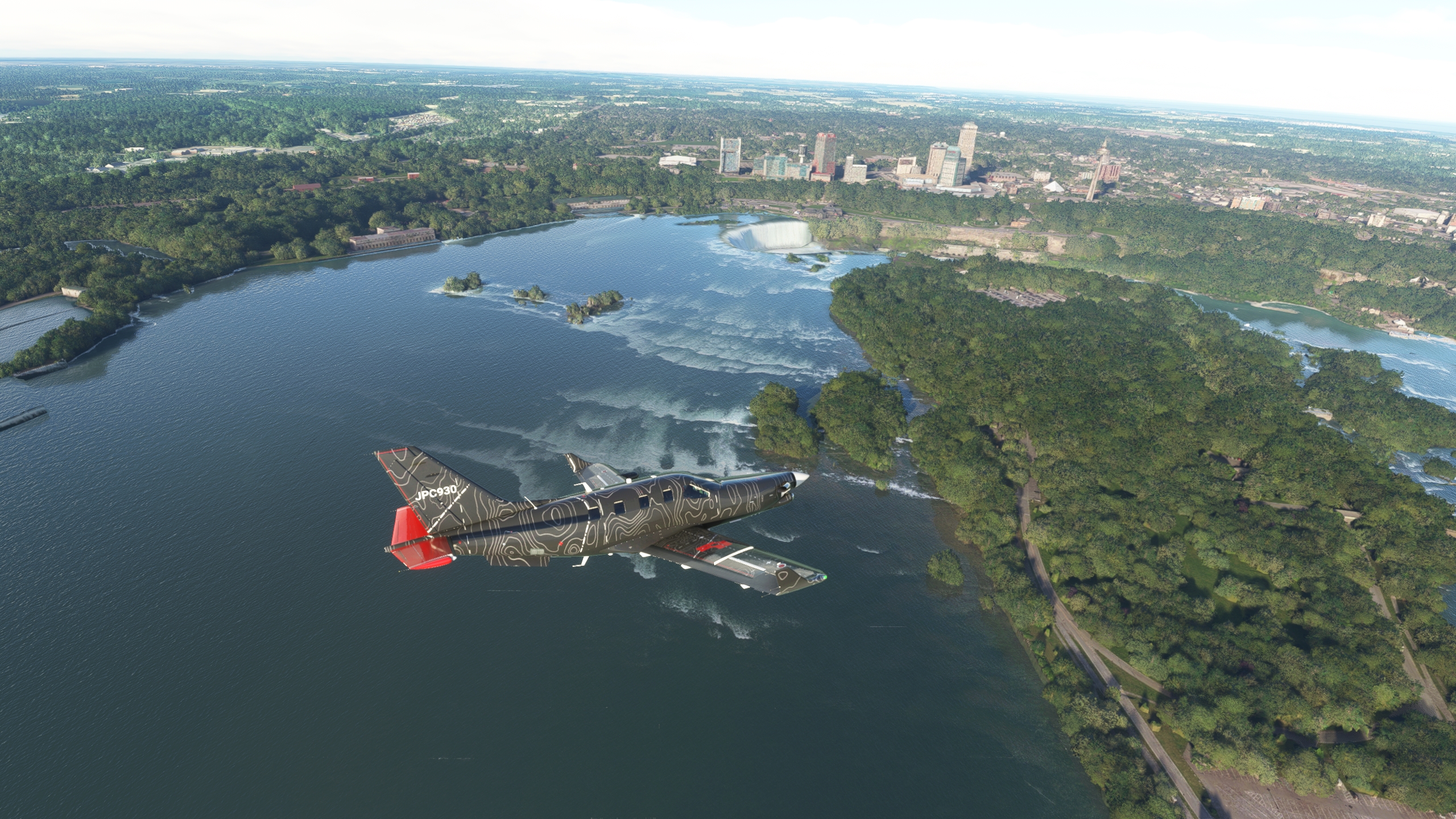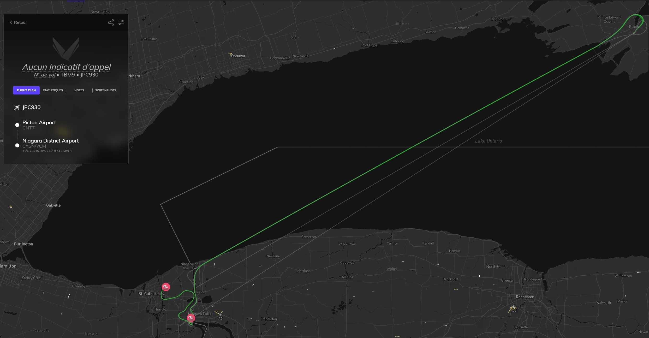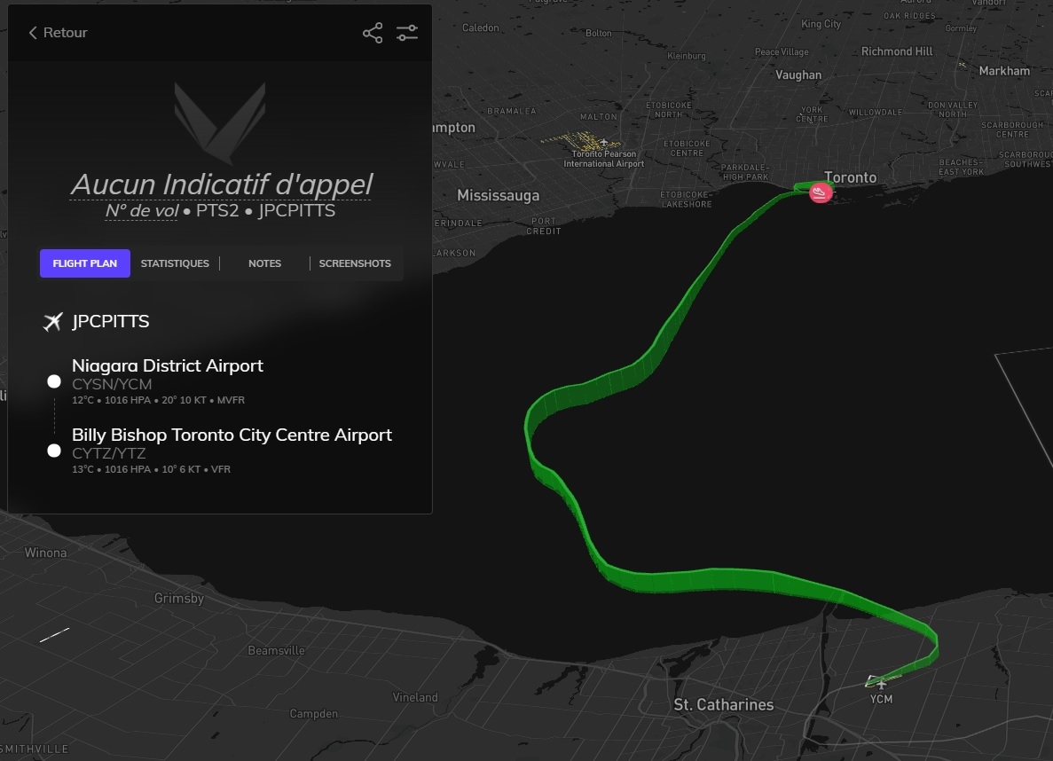 hmmm, pas de CSY4 dans les pistes de MSFS... un survol et on pousse jusqu'a CYFJ "Permission de raser la piste à 250knts, silvouplé" Cap au sud pour maintenant rejoindre Montreal Petite pause pour remettre un peu de jus dans les réservoirs Et vite reparti Le parc olympique Demi tour, on va aller amuser la galerie downtown Après quelques frayeurs, c'est reparti pour suivre le Saint-Laurent Euh, c'est quoi cette météo Arrivé à CNT7, la piste est éteinte, il fait un noir complet. Arrivée à Niagara Falls avec une météo plus clémente. Un mauvais click et j'ai explosé la verrière au passage, j'avais du oublier de la vérouiller