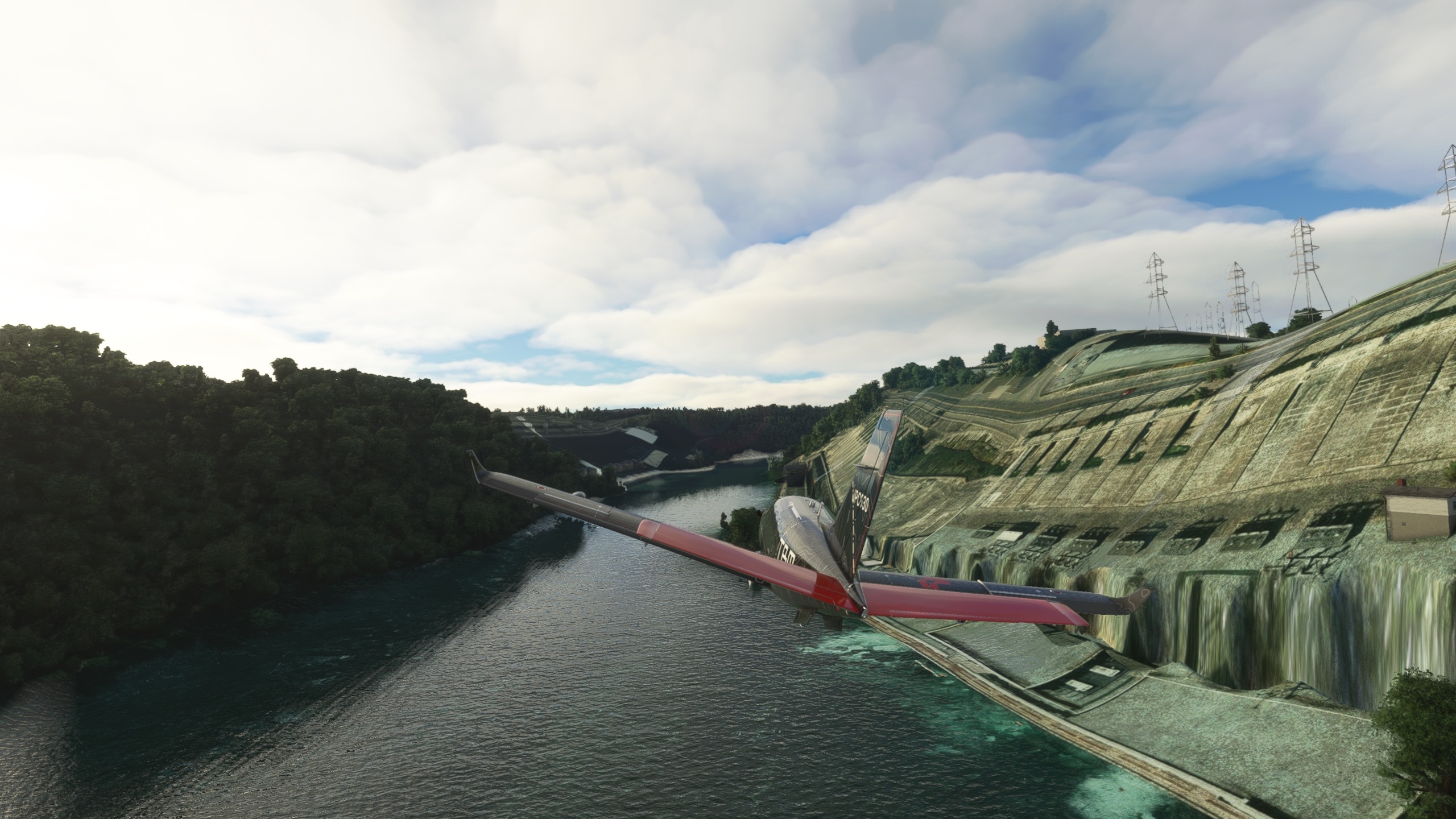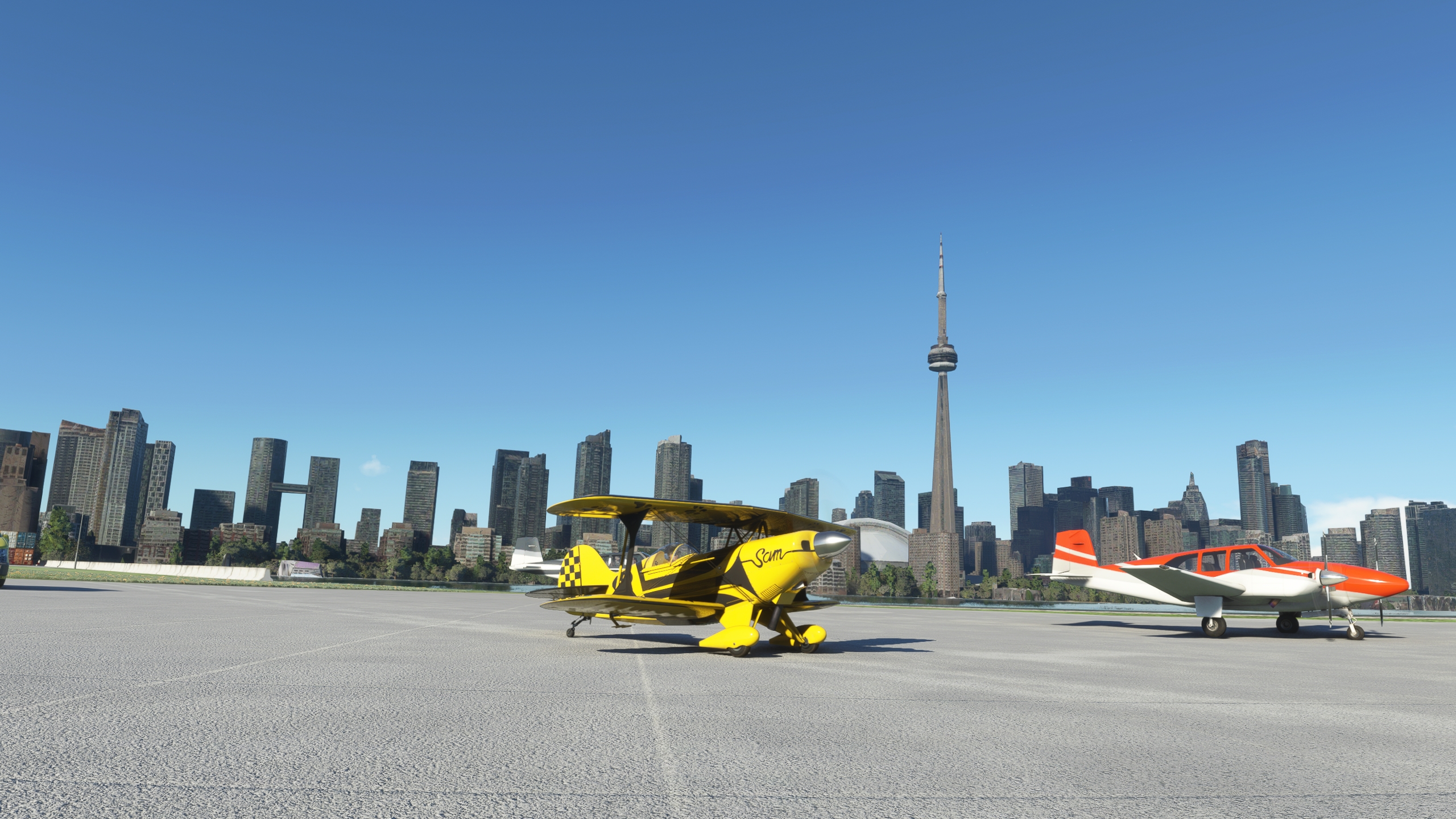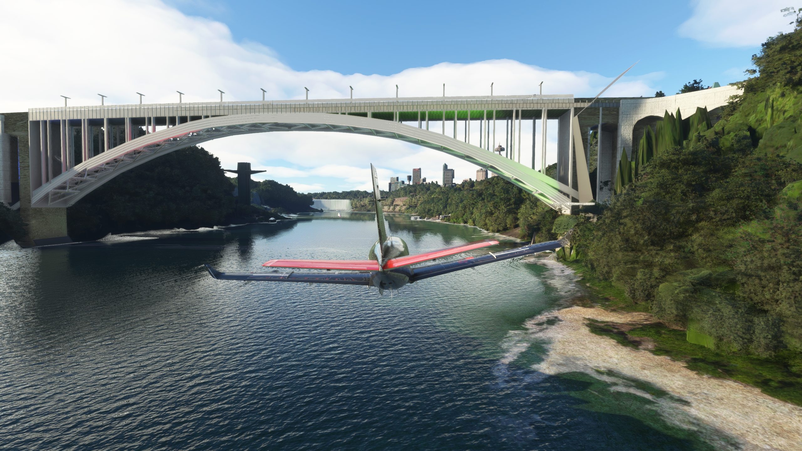 hmmm, pas de CSY4 dans les pistes de MSFS... un survol et on pousse jusqu'a CYFJ "Permission de raser la piste à 250knts, silvouplé" Cap au sud pour maintenant rejoindre Montreal Petite pause pour remettre un peu de jus dans les réservoirs Et vite reparti Le parc olympique Demi tour, on va aller amuser la galerie downtown Après quelques frayeurs, c'est reparti pour suivre le Saint-Laurent Euh, c'est quoi cette météo Arrivé à CNT7, la piste est éteinte, il fait un noir complet. Arrivée à Niagara Falls avec une météo plus clémente. Un mauvais click et j'ai explosé la verrière au passage, j'avais du oublier de la vérouiller