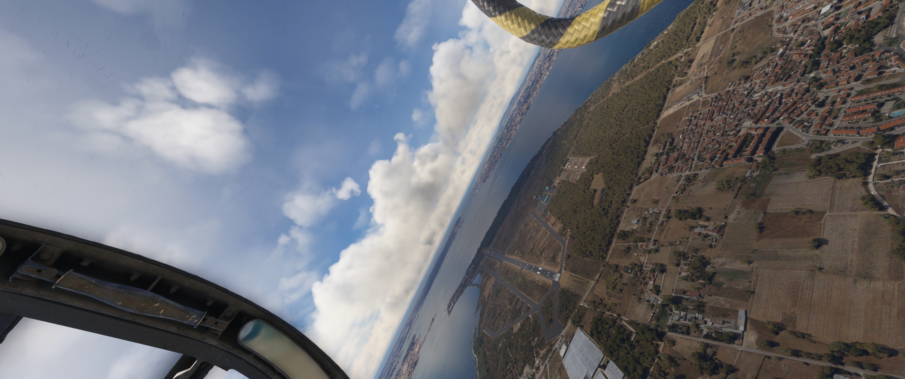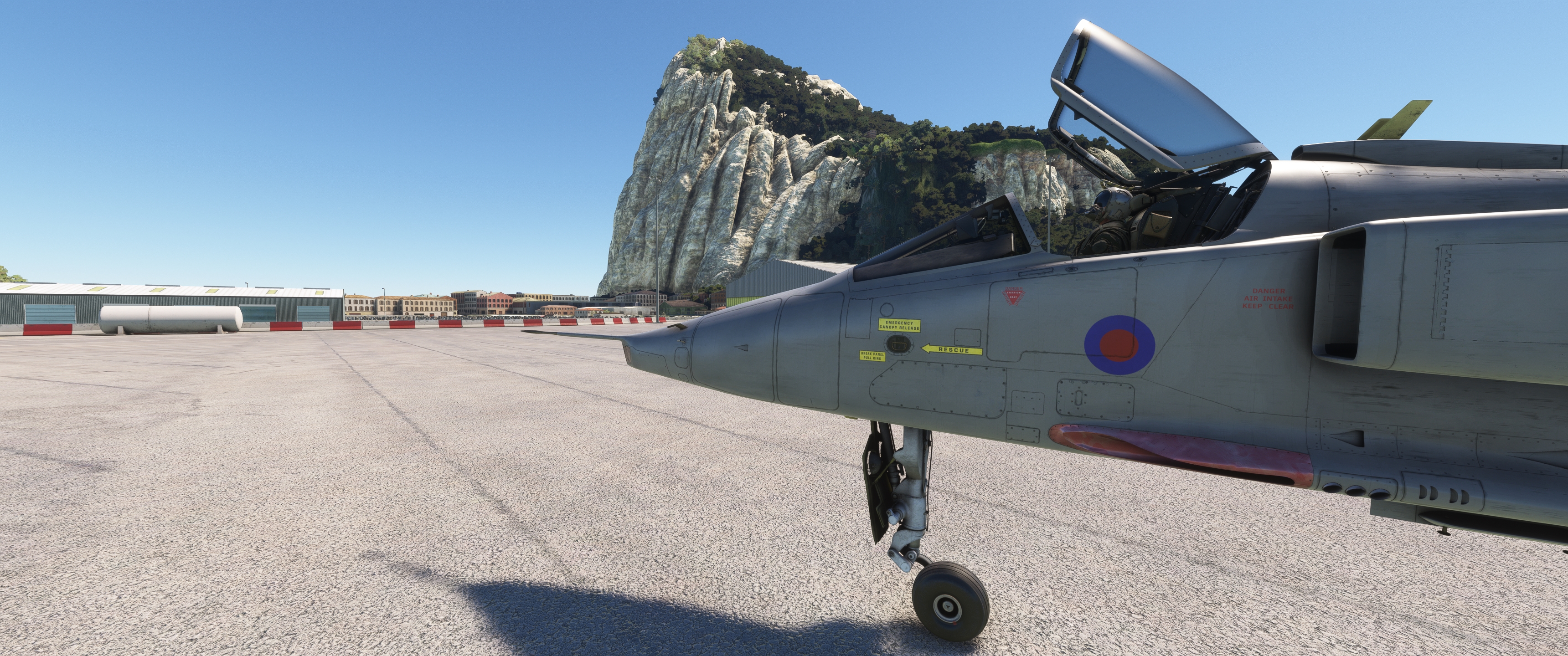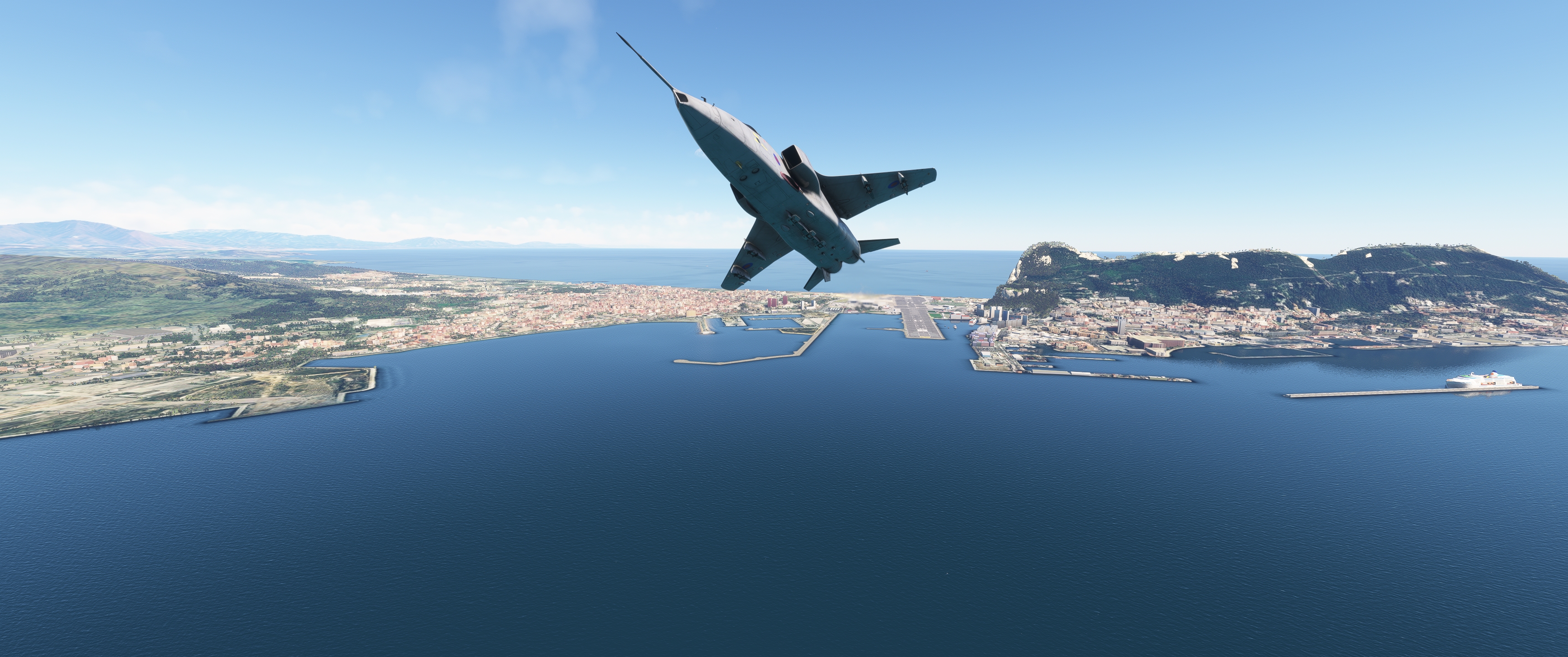 Il y a de la marge mais on va vider les wingtips. Circuit très court à Cascais, à deux pas de Lisbonne. Et on parke à son aise. On repart, direction Faro ! Arrivée in staÿle. On parke mais cette fois on attend le camion d'Avgas Dernière étape, direction Gibraltar! Évidemment, le temps passe... donc le Soleil avance aussi. Le gros caillou est là. On se laisse glisser... Et c'est dans la boîte pour ma part